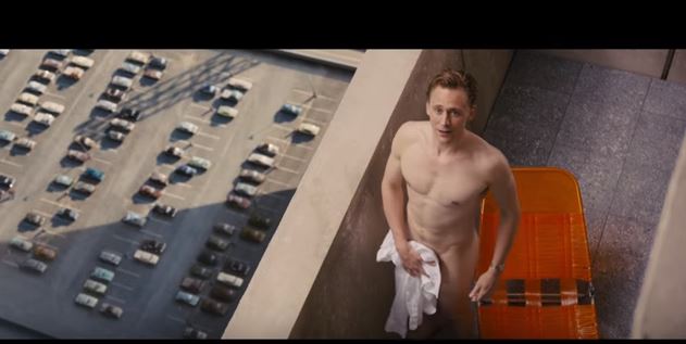 A new trailer for Tom Hiddleston’s next film, High Rise, came out yesterday and it expands on the previous glimpse of Nearly Naked Sunbathing Tom Hiddleston with Nearly Naked Standing & Talking Tom Hiddleston. This is what I mean about this movie baiting the super enthusiastic internet fandom surrounding Hiddleston—how long am I going to have to spend on Tumblr before finding a GIF of Nearly Naked Tom Hiddleston? Point-two seconds? (Literally the first search result.) Have fun when this f*cked up movie comes out, Tumblr.