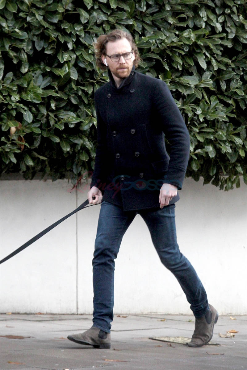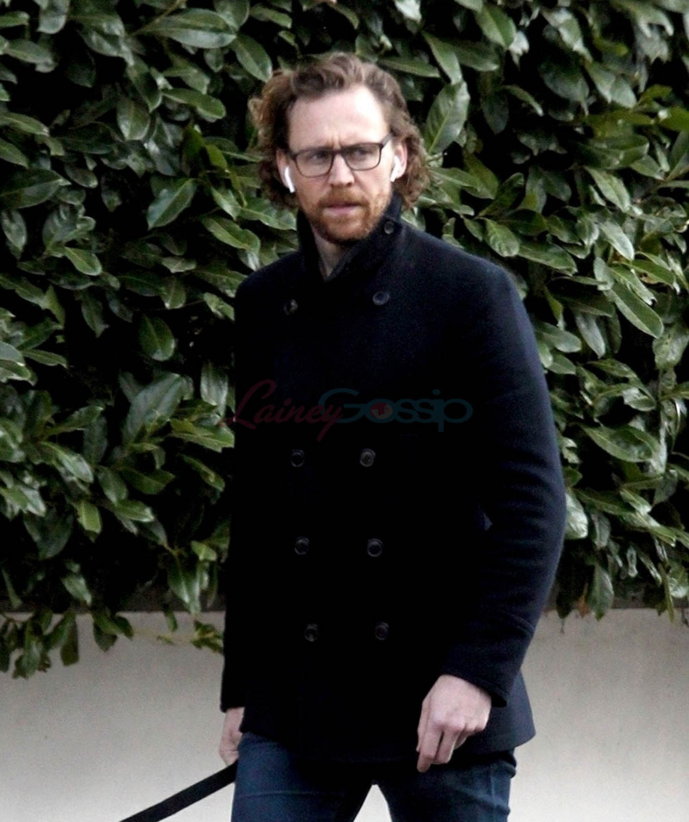 Anyway, here’s Tom in London today out for a walk with his dog. This is the first time we’ve done a dedicated Tom Hiddleston post since May. At the time, I didn’t know what the dog was called. Apparently Bobby? Tom, like Henry Cavill, is wearing his hair longer these days. Look at the back of it, blowing in the wind. It’s ponytail length. A short one. Maybe a man-bun. This is not a request. I never want to see Tom Hiddleston with a man-bun.