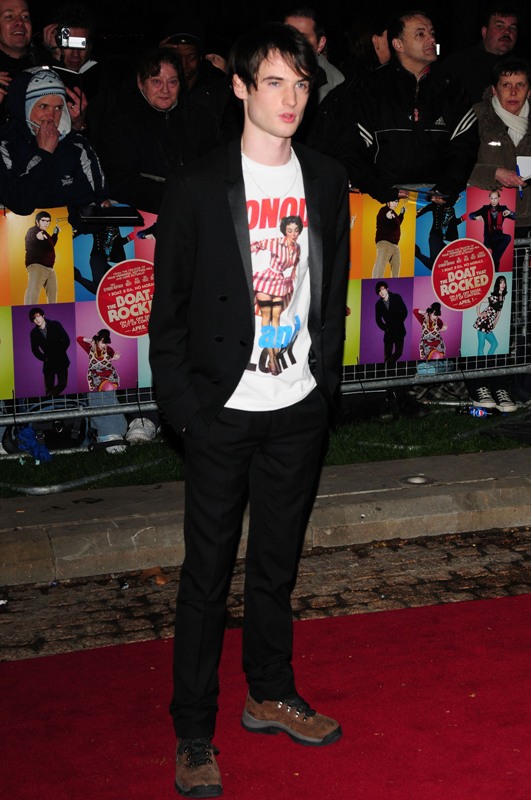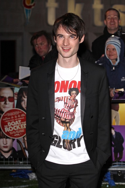 Tom Sturridge is apparently a very good friend of Robert Pattinson. Here he is on the carpet for The Boat That Rocks last night in London. As you can see, his BFF gave him a few tips. One tip.