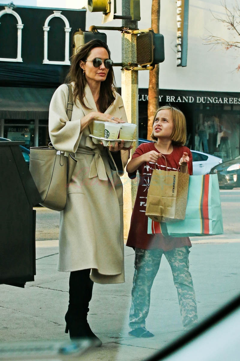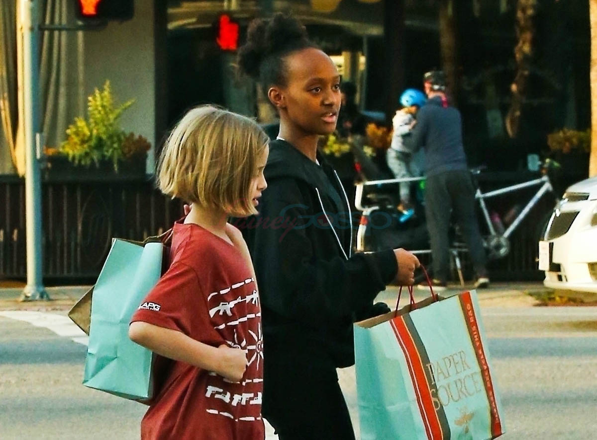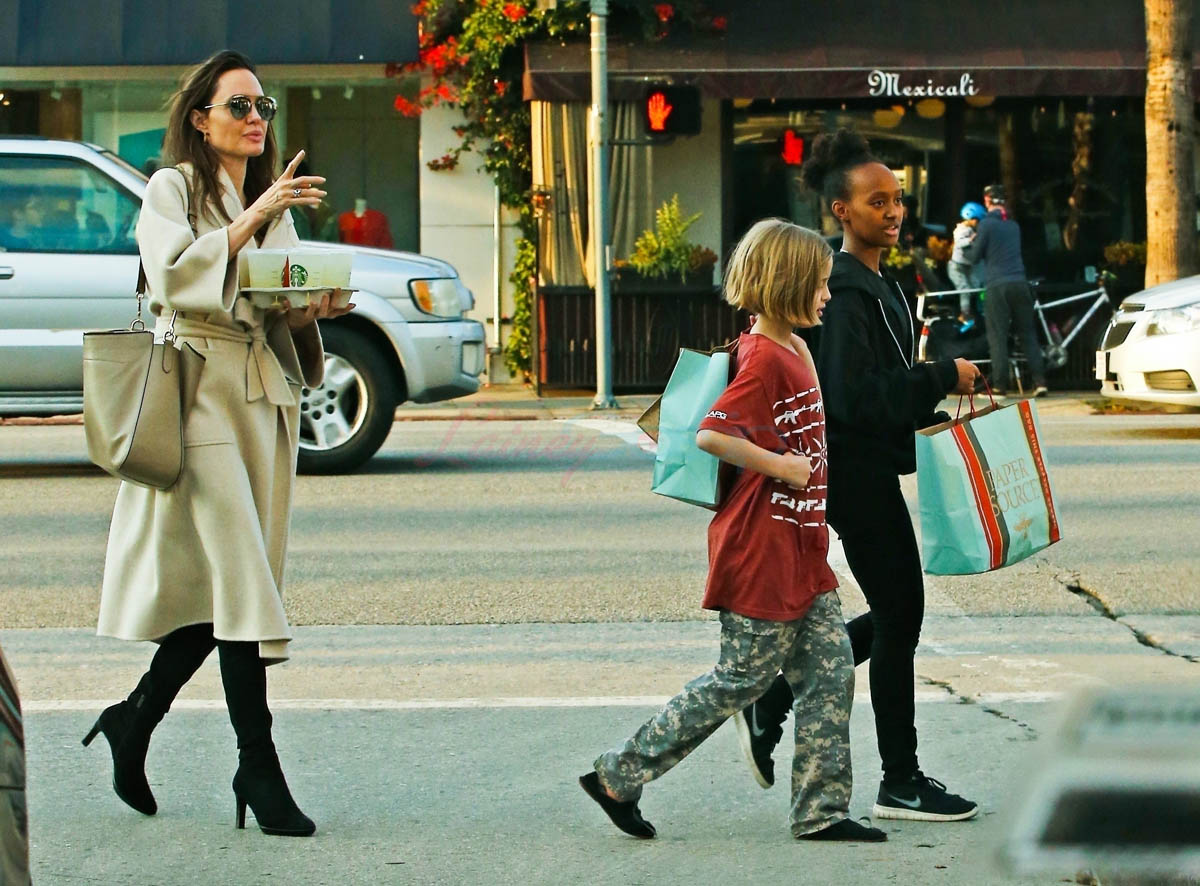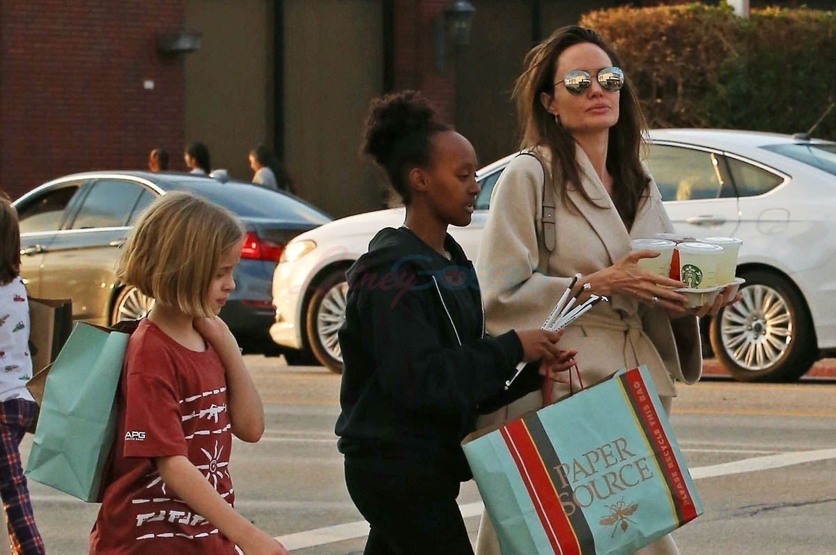 Attached – Angelina with Miss Zahara and Vivienne on Sunday in LA. That’s a lot of stationery products. Are they making invitations? Or Easter gifts?