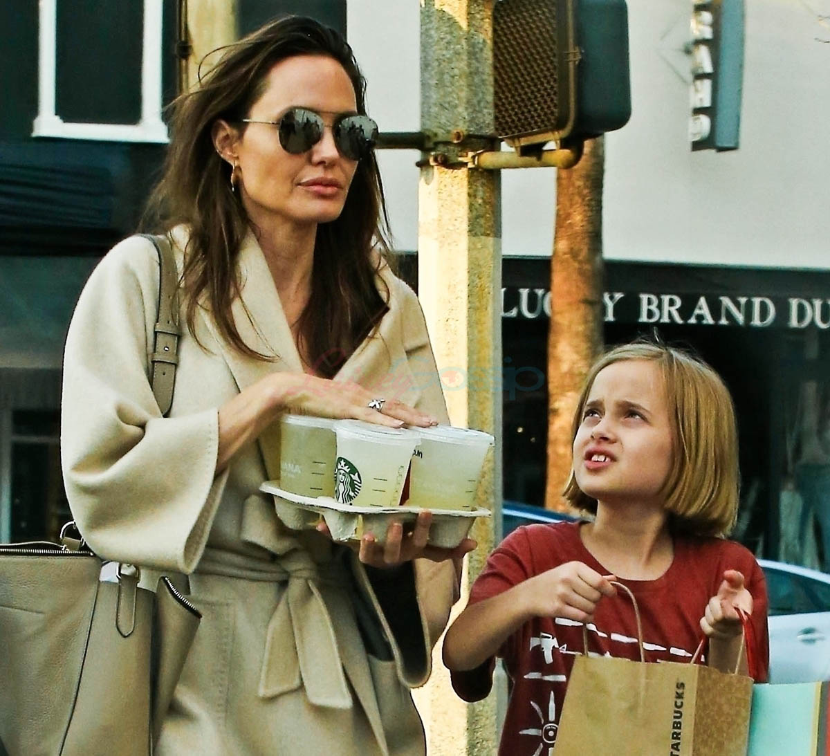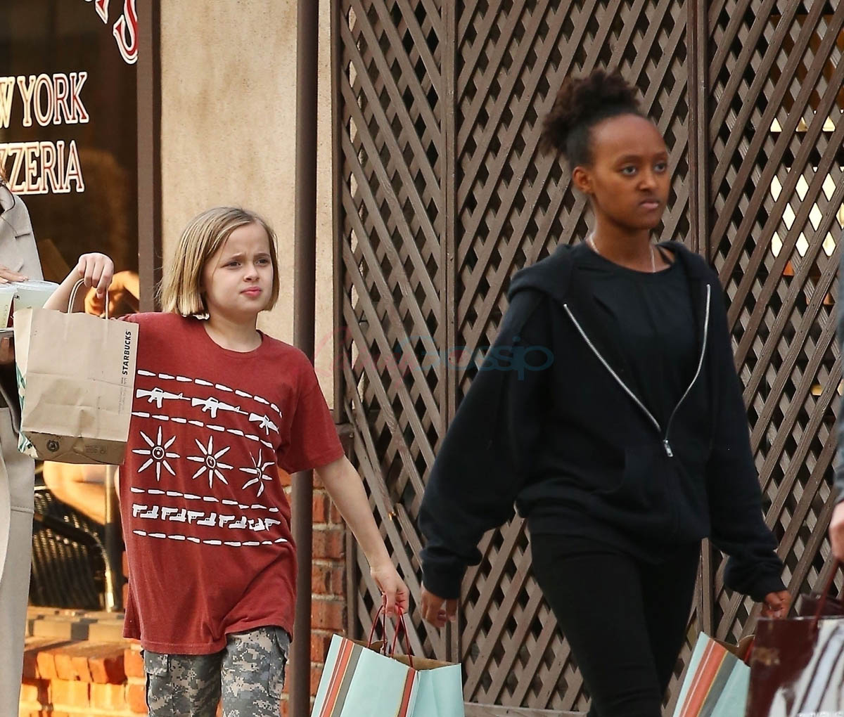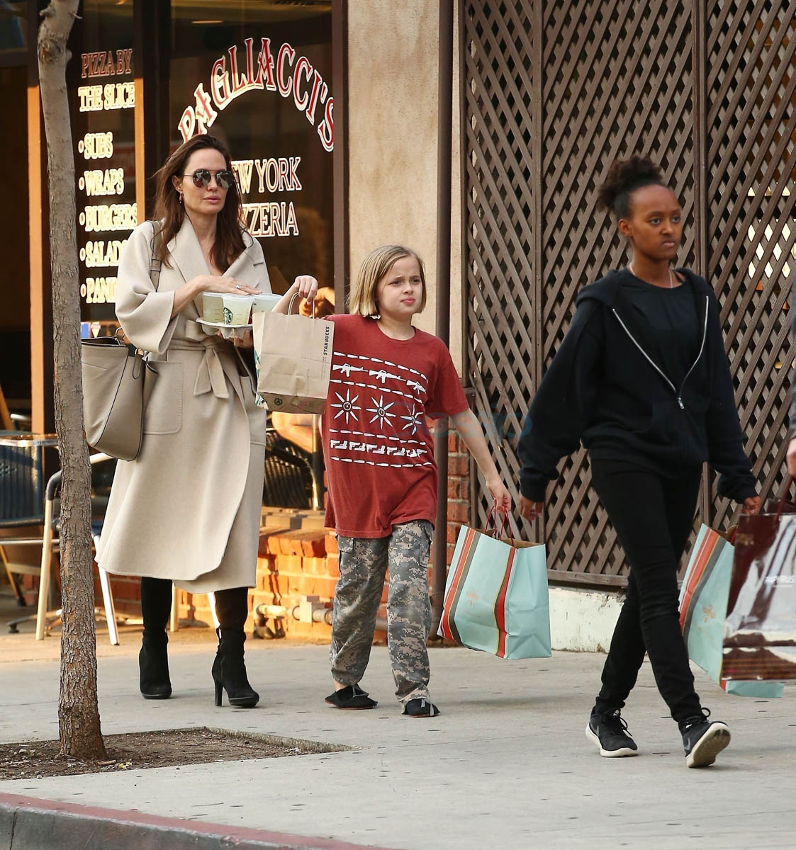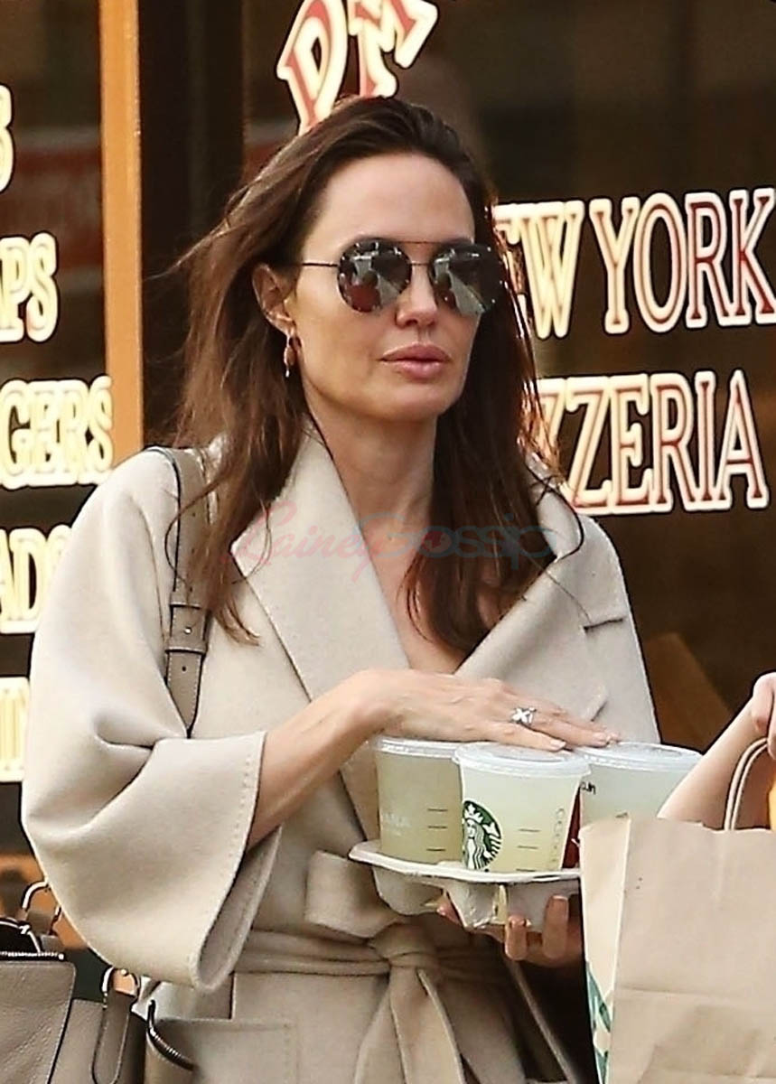 Attached – Angelina with Miss Zahara and Vivienne on Sunday in LA. That’s a lot of stationery products. Are they making invitations? Or Easter gifts?