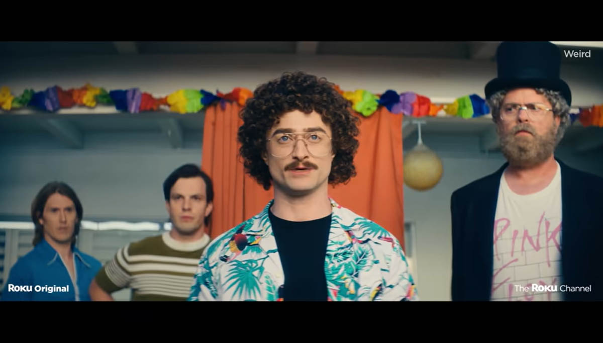 The teaser for Weird: The Al Yankovic Story is here, and it is mostly Daniel Radcliffe singing “Like A Surgeon” and shots of DanRad as Weird Al doing things like performing on stage and celebrating with his friends, and every shot is perfect. DanRad looks GREAT, and I’m not just talking about his pocket rocket bod—didn’t we already know he’s secretly buff from that time he got naked on Broadway?—but the smile and the HAIR and the accordion, it’s all golden. And! Bonus! This teaser reveals Rainn Wilson is starring as Dr. Demento, the radio DJ who specializes in novelty music who launched Weird Al’s career in the 1970s. That is perfect casting, as is getting Renowned Character Actors Toby Huss and Julianne Nicholson to play Weird Al’s parents, Nick and Mary. The “Roku Channel”, which I still don’t believe is a real thing, is not cheaping out on talent for this movie.