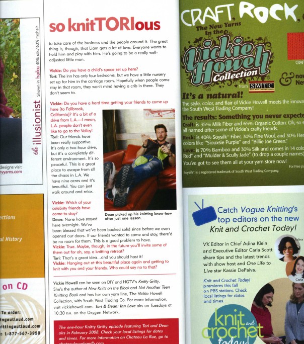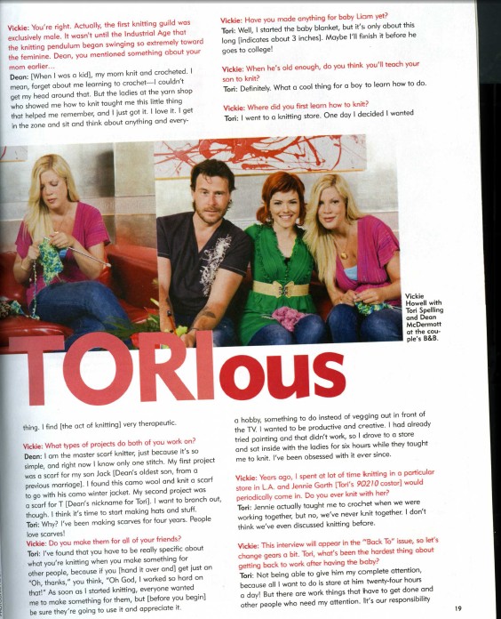 My thanks to the lovely, lovely reader who scanned this and sent it in after cracking open a knitting magazine and enduring the displeasure of seeing Tori’s ugly and her spouse staring back at her.