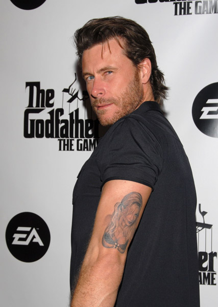 From JJB. I"d like to start by complimenting Tori Spelling. For a girl who looks like someone stepped on her face, I think she"s made the most of her deficiencies. There is a glass ceiling for de-uglification, you know. And no matter how hard certain people try, the Goddess only lets them get so far. Especially when you"re richer than ass. From this perspective, I think Tori"s done alright. She doesn"t make me want to puke, she hasn"t gone overboard with the surgery, and I almost like it when she smiles. Very good progress for someone who could have very easily gone the way of her peers, like Fergie and Donatella - the reigning bitches of Ugly. But this is not about Tori. This is about Dean. And Dean has succeeded where we thought no man could go. Because Dean McDermott has taken golddigging to a whole new level of devilish depth, way, way, way past Federline. This is a man truly committed to the bank account, willing to do what it takes to secure the prize. I admire that in a lowlife. I mean, if you"re going to marry for money, you might as well do away with all traces of pride and dignity. Which it what Dean has accomplished in spades. On one wrist - a tattoo that reads "Truly Madly Deeply Tori". Pretty impressive sh*t, right? But that"s not all. On the other arm is a very flattering drawing of Tori"s top half, complete with heaving cleave and a very fancy bra. Extraordinary, non? I mean, the current Tori might be a 100% improvement on Donna Martin but I think we can all agree that hers is not a face you would permanently etch prominently on the side of your body. It takes some deep, pure greed to pull this one off, my friends. And I think in this regard, the Dirty Deano might have a slight edge over the KFed.