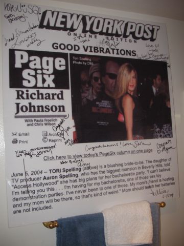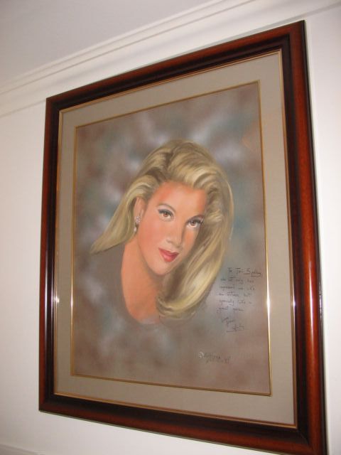 As we all know, KFed Jr needs to get paid. Because Junior considers himself a victim of false advertising. And can you blame him? He thought he left his wife for an heiress, he thought he’d be living in the lap of luxury, he thought he’d have his very own production company by now…with the power to greenlight his own projects. Instead, poor Junior actually had to go to work. Hard at work. Working for the reality tv show. Working to get that B&B up and running. Working on carrying his wife’s purse around, working on giving interviews during which he stretches his limited acting abilities as far as they can go, trying to convince the world that he actually believes his wife is the most beautiful woman in the world. And now working like the rest of us – packing, storing, labeling, organizing the Weekend Yard Sale, eager for any scraps no matter how they’re procured, whether it’s hawking her clothes on eBay or bargaining her furniture off on the block, Junior clearly put his foot down and told his bitch to get him some cash stat. So here you go… a selection of real finds from Tori’s personal collection, including a cheesy ass portrait and an autographed page from Page Six – ironically an article written about her staggette, just before her first wedding to the man she ditched as soon as someone else’s husband came along. Seriously though…look at that furniture. I know it’s a matter of taste but hers is the sh-ts, man. Girl lives like a geriatric bird collector…is this what the Spelling mansion looks like? Thanks Lisa!