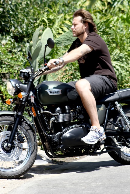 KFed Jr is apparently quite the daredevil, injuring himself recently in some race car and now massaging his dick with a new Triumph. He keeps saying Tori is the most beautiful woman in the world. So you do what you need to to get through, you know?