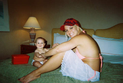 Us Weekly apparently stole these "private" photos of the Family Federline as we"ve never seen them. You will note that Britney looks curiously attractive here with no discernable foundation melting off her face or eyelashes that are threatening to take on a life of their own. Kevin is also remarkably "father" like, managing to keep his middle finger and his thug pout firmly at bay, which is why little Sean Preston probably looks so stunned in that one photo of him in the stroller. That kid is chubb delight! Gossips, forgive me if I give this Cleaver moment a free pass today. If I wasn"t so focused on spewing all over Tori Spelling, I"d gladly take a stab at your favourite target. But today, we have a homewrecking, mother slanderer to deal with and all my energies are focused there. However…um…can I just be a spoiled little sh*t for second? Can I direct your attention to the photo where Britney has SPF on the bed in what appears to be a hotel room? So, like, I"m not the kind of person who can afford to roll first class and stay at the Ritz or anything but what"s with the Best Western thing she"s got goin" on here? Hey - don"t get me wrong. Best Western has my name written all over it but you"d think the Federlines could afford a Holiday Inn, at the very, very least, non? Just asking...