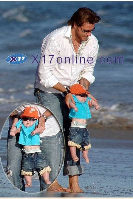 Here they are at the beach and there’s little Liam, so young but already being put to good use. Gotta give a ‘Digger his due: he never misses an opportunity.