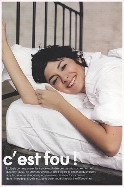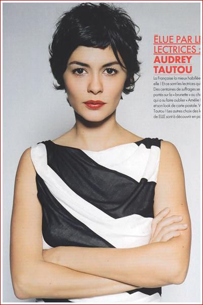 Who do I love more? Eva Green, as you know, is my new girl grush. But then there"s Audrey...always Audrey. Check it out from the pages of French Elle - seriously, does it get any better? I went to a French school for a few years, with the exception of English, every subject was in French, all the teachers were French, and the headmaster was French, with students of French heritage, and all these French people, no matter if they were unattractive (some wildly so), all had that coveted distinct French pout, so beautifully illustrated here by Audrey Tautou. And the hair. If mine could grow like that, I"d do this in a second. As it were, we Asians, we"ve got the upward follicle issue, grows up and out when it"s short, doesn"t stay close to the scalp... I call it a genetic trade off: our skin might not age til our 60s but we have no eyelids and get porcupine head if we"re not careful. Which is why to me, Audrey Tautou is the definition of perfection. Love, love, love. Source