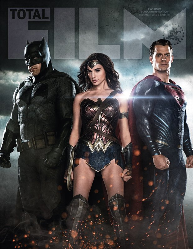 The cover of Total Film features the “Trinity” of Ben Affleck’s Batman, Henry Cavill’s Superman, and Gal Gadot’s Wonder Woman. Despite the ridiculously short skirt on her costume, I’m still into Wonder Woman’s overall look. What bugs me is that the actual costume is quite colorful, but Zack Snyder’s drained palette takes almost all the red out of it, rendering it a lot less dynamic on film. They don’t need to use the same pop color scheme as the Avengers, but a little more brightness wouldn’t kill them. Part of the allure of superhero movies is the colorful costumes, but Warner Brothers/DC consistently acts embarrassed about this aspect of the movies.