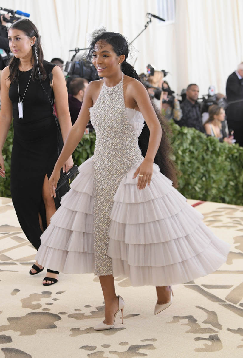 I can’t decide. Her stylist, Jason Bolden, told The Hollywood Reporter that Yara’s Chanel look for her first ever Met Gala was “this beautiful play on the idea of marriage to religion”. So we’re going with the young bride vibe. Sure. But in THR’s Power Stylists Roundtable a couple of months ago, he also said that, “When I was working on Yara [Shahidi]'s 2017 Emmys dress, I was on the phone with [Prada] saying it had to be her last princess moment”.