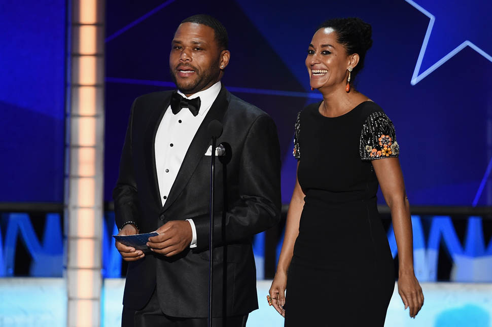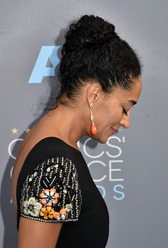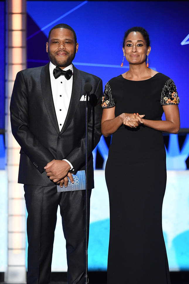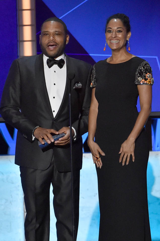 And I loved her sleeves last night. And those earrings. And of course the joke. Right off the top of the show, as she and Anthony Anderson came out to present, they took a shot at the Oscars.