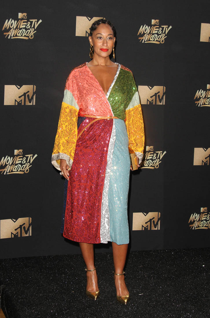 Sasha emailed me last night freaking out about Tracee Ellis Ross’s look at the MTV Movie and TV Awards last night. It’s her “favourite for all of 2017”. I like it too, though I’m not sure I would say it’s my favourite for the entire year so far. That said, it’s totally Sasha’s aesthetic. It’s a hippie dress…with sequins. Like you can still wear your essential oils but also bring the glamour.