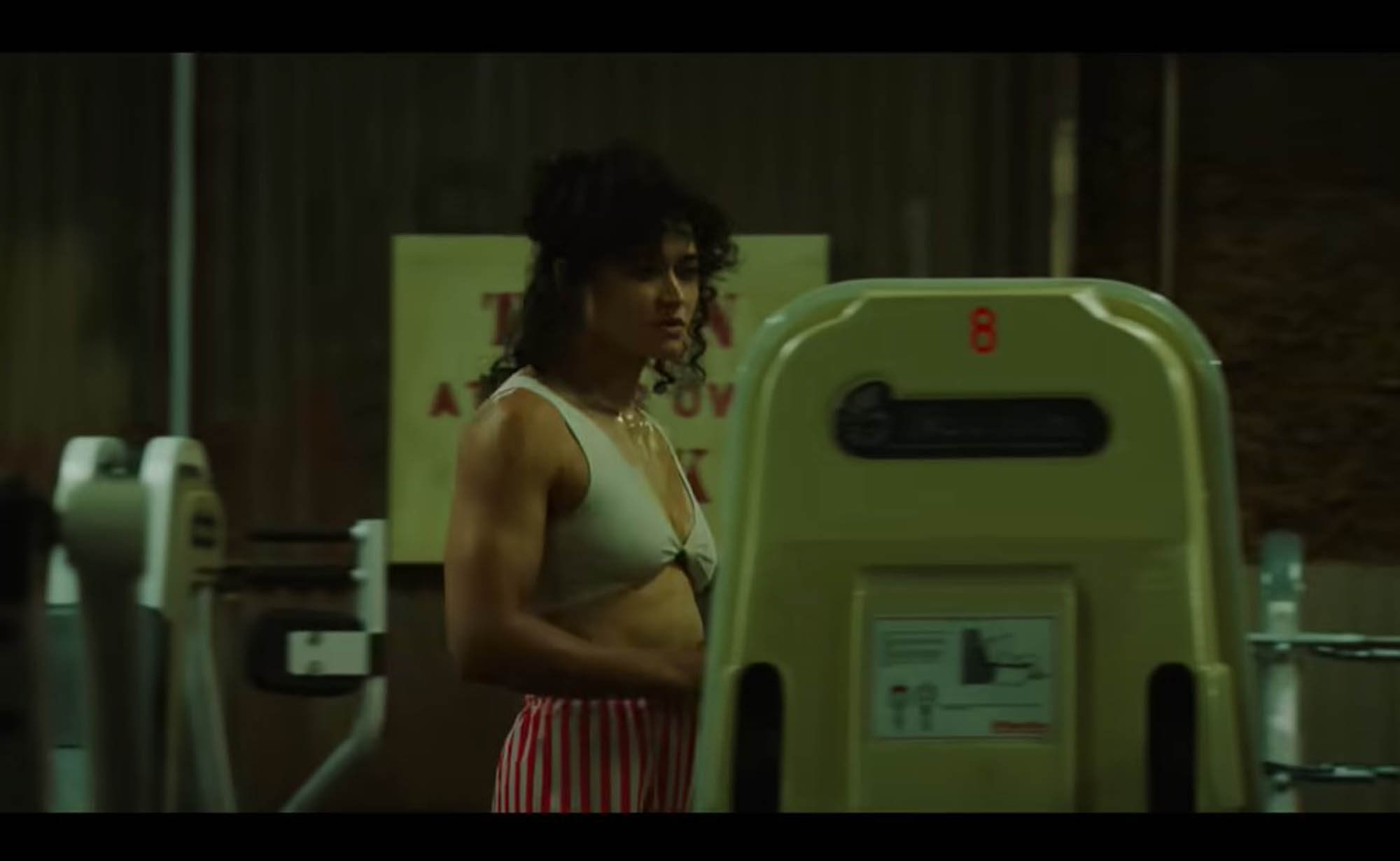 O’Brian’s character is a bodybuilder whose body seems to Hulk out. What is that about?! And Stewart is giving Joan Jett vibes, once again rocking a jet-black mullet as she did in The Runaways.