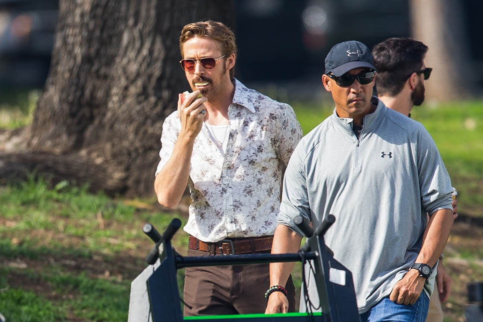 (Lainey: Ryan being super sweet with George on set yesterday.)