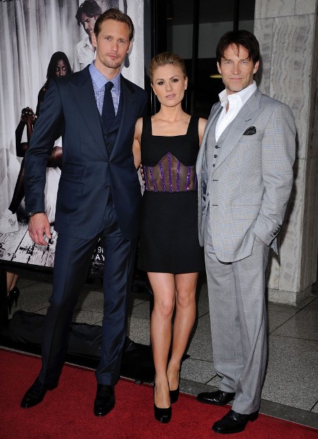 True Blood’s Main 3 were all present last night at the show’s fourth season premiere. Check out Anna Paquin, Stephen Moyer, and Alexander Skarsgard on the carpet alongside almost the entire TB cast as HBO gets ready for one of its marquee shows, and one of its strongest performers.
