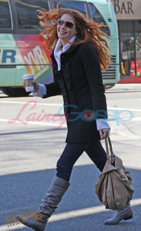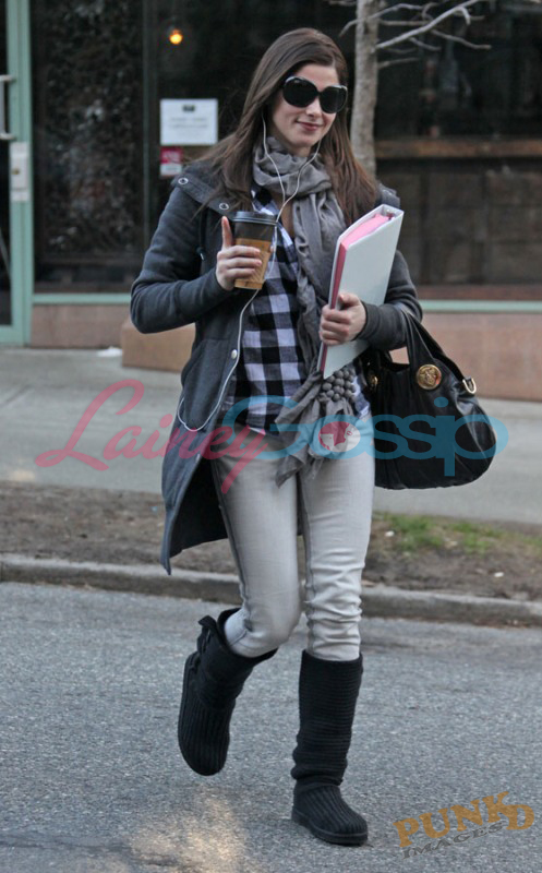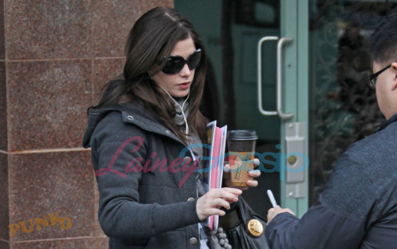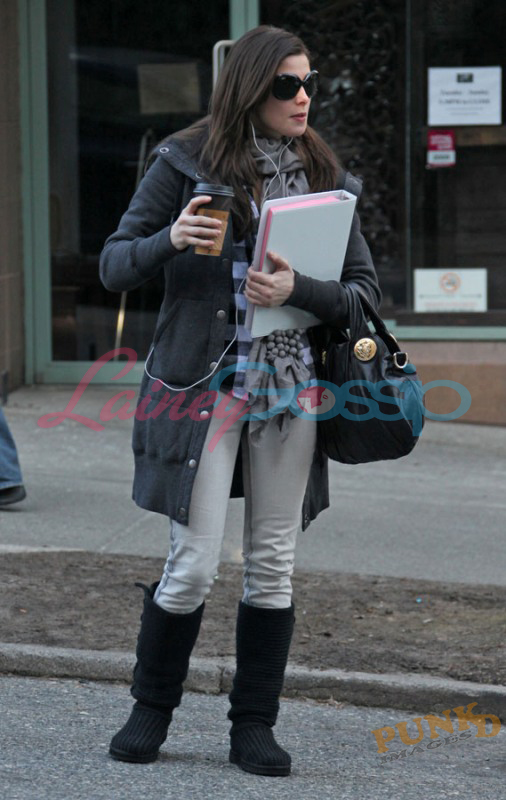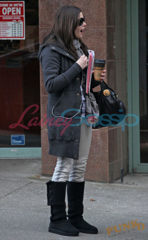 Also Jackson’s castmates – Ashley Green with whom he arrived at the airport (there’s a teddy bear in her bag) and was seen on a coffee run the other day… is there something going on? Rachelle yesterday morning with all that amazing hair, and Elizabeth Reaser who has some odd footwear options considering it’s only Starbucks.