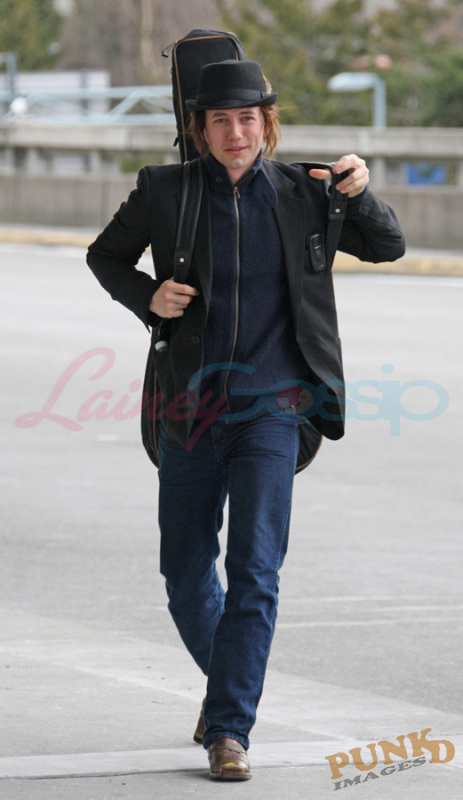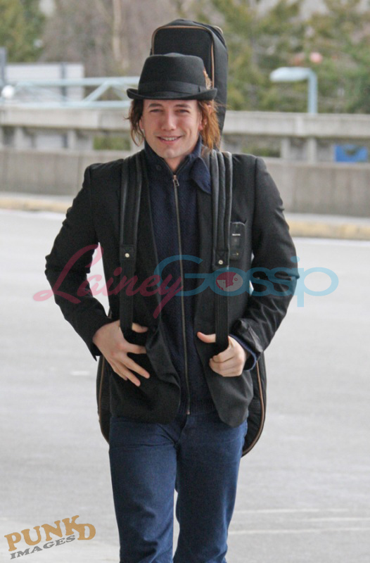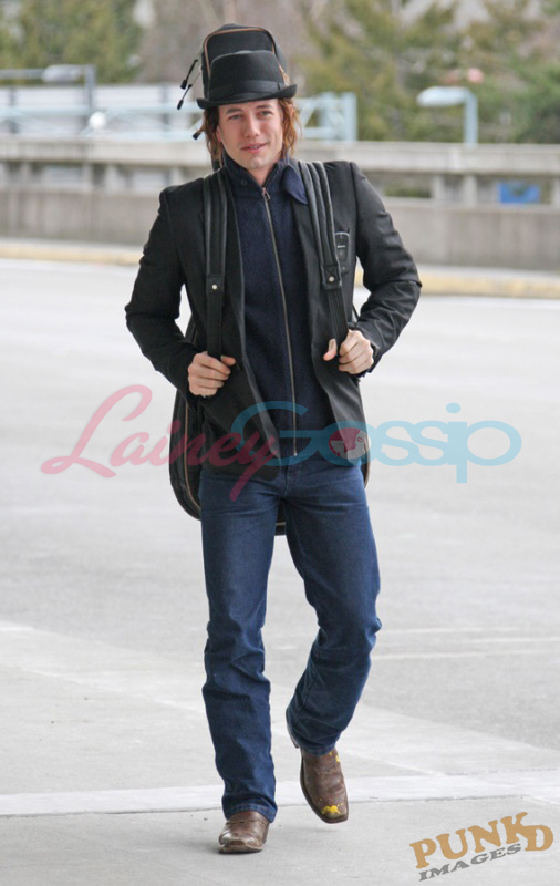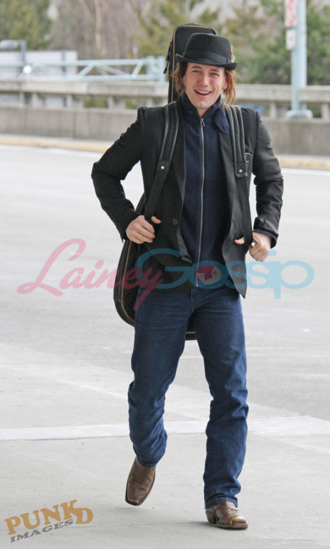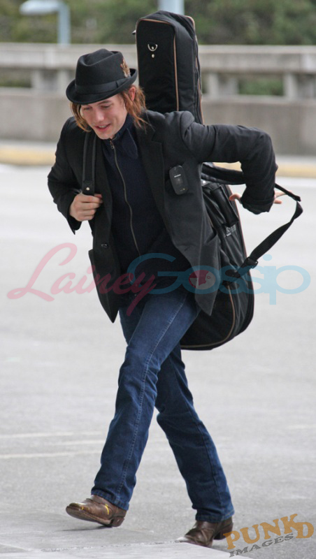 Here he is Jackson Rathbone at Vancouver airport taking off today with his new Jasper hair. Very well worn pair of pants, non? Seems like a confident, easy going, not awkward all the time dude. Good.