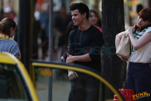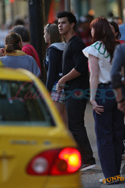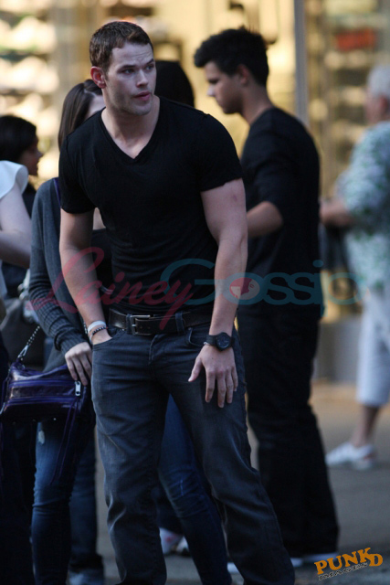 Taylor, Kellan Lutz, Ashley Greene, Bryce Dallas Howard, Peter Facinelli, Nikki Reed, Elizabeth Reaser, and Xavier Samuel were all together for a 3 hour meal that wrapped up around midnight. Am starting to like the look of this Xavier. Like a sober but still badass Jonathan Rhys Meyers.
