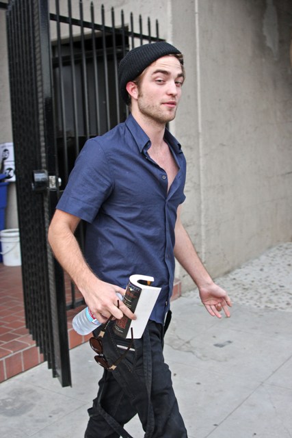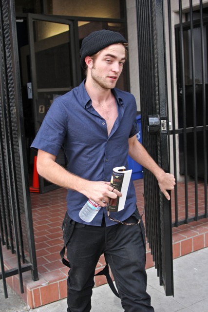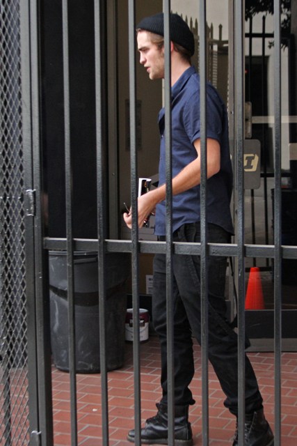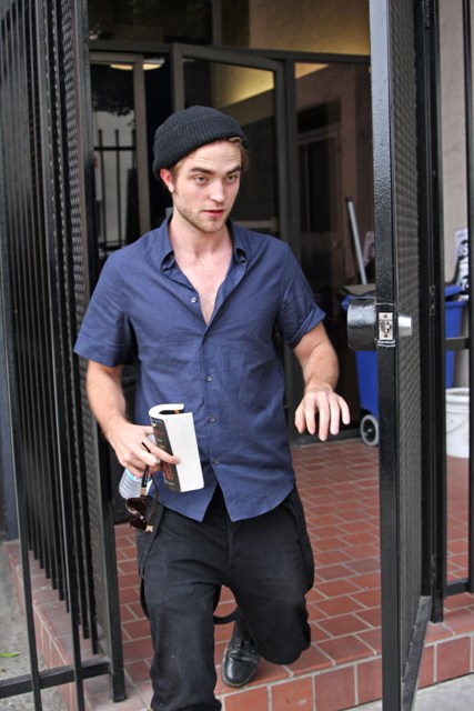 As for Robert Pattinson, the current king of the box office, here he is in LA today after a business meeting, trying to slip out the back door but unable to hide from the paps. Or maybe that was the point. He was after all visiting the firm handling Twilight marketing. It’s only a quick phone call. Must feed the masses.