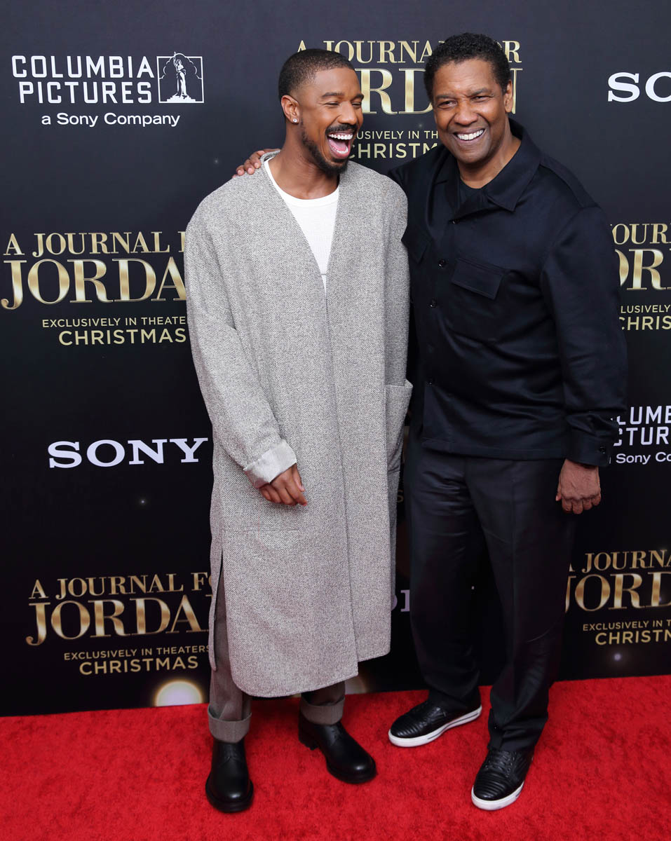 Denzel Washington and Michael B Jordan were in New York last night for the premiere of A Journal for Jordan, which opens on Christmas Day. Denzel directs, MBJ stars, it’s a blockbuster combination of two artists who for years have been culturally connected as king and successor and who also happen to have both been PEOPLE’s Sexiest Man Alive – Denzel in 1996, the first Black man to hold the title, and MBJ just last year.