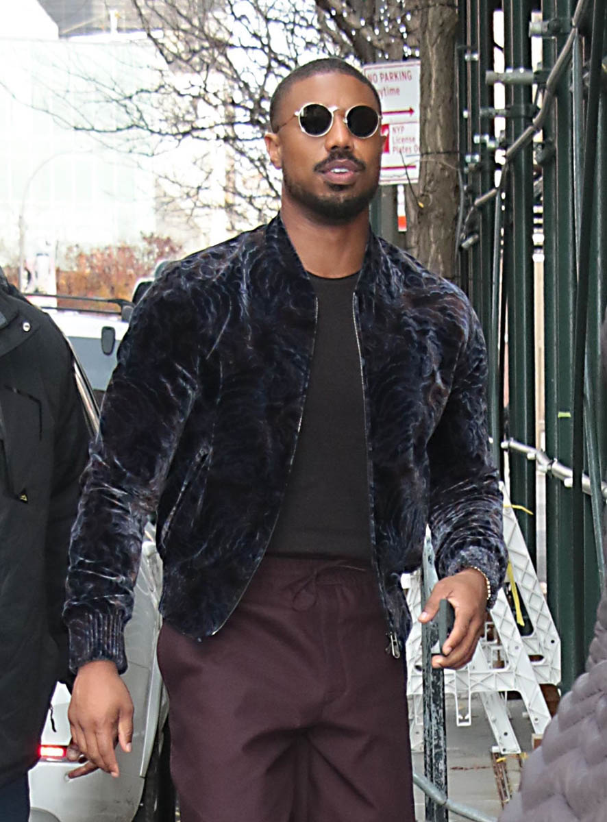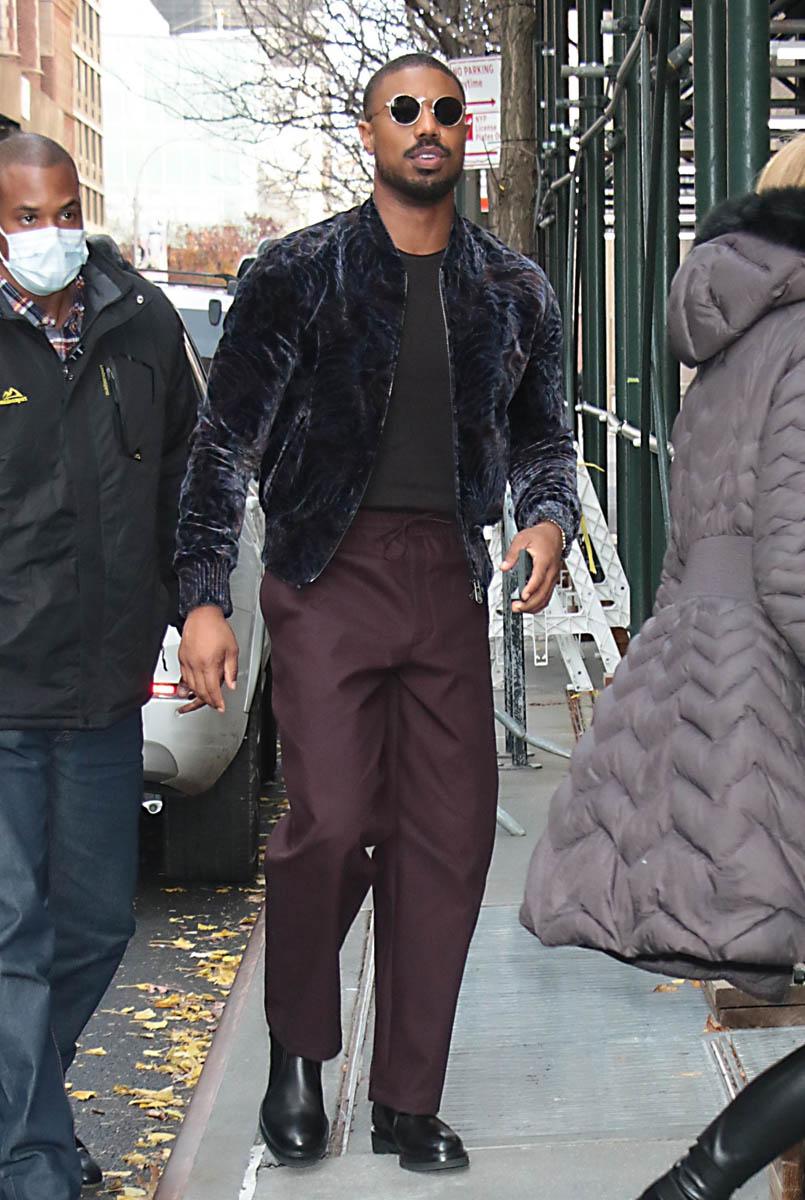In the meantime, MBJ before the premiere was on the talk show circuit yesterday in New York, with multiple outfit changes. During his interview with Stephen Colbert, he talked about his ass. A Journal for Jordan, after all, is a love story. So there’s a love scene. And Denzel hired a female DP for this film so that this romance could be shot in service of the female gaze. When it came time to shoot the love scene, then, he asked Maryse Alberti where the camera should be. She gave the right answer. It is where we all want and need it to be: on MBJ’s ass. He calls it a “career decision”, LOL.