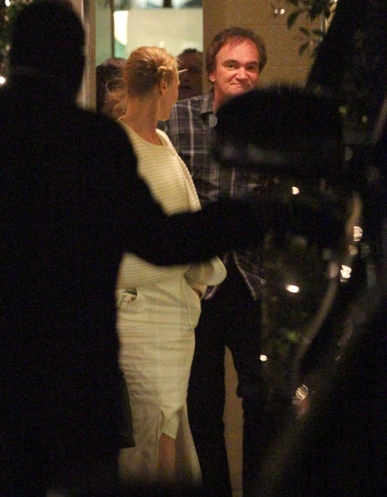 These are the first photos of Uma Thurman and Quentin Tarantino since it came out that they're dating. I think. I mean it's not a rare visual, Uma and QT. They've known each other for years. They've worked together for years. And this looks, really, no different from all that's happened before; if you didn't know they were together-together, you'd probably suspect nothing. Except now that you know they're having sex, you're seeing it differently.