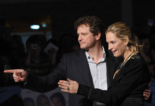 There was a little something extra in Uma’s face tonight in London for the premiere of The Accidental Husband co-starring Colin Firth and Jeffrey Dean Morgan. Uma and Colin – great onscreen pairing, non? Me likey.