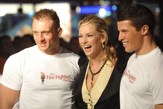 Or maybe Uma in the end of the movie will end up with a gay fireman? Gay firemen are the best. Look at them! Beefy and preening on the red carpet, lean and popping from a chicken and rice only diet for the last 2 weeks in preparation for this big moment.
