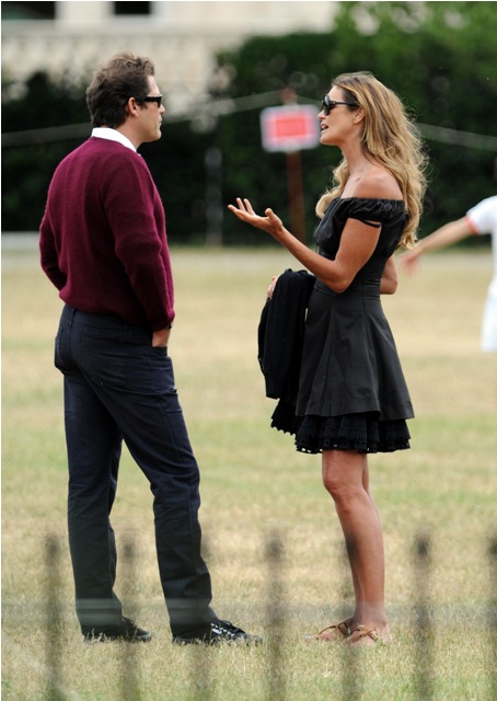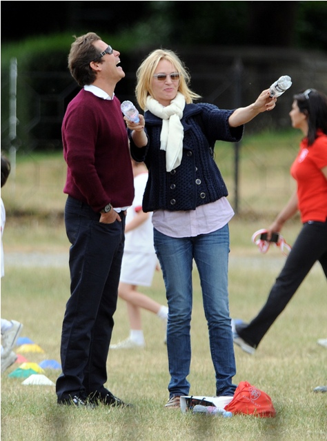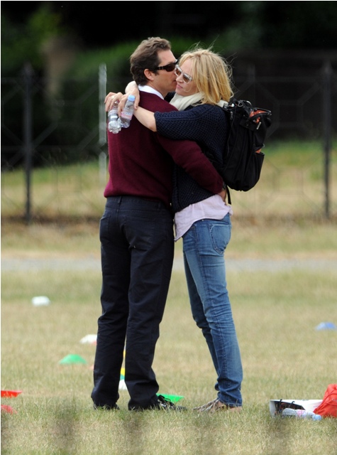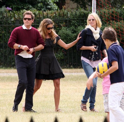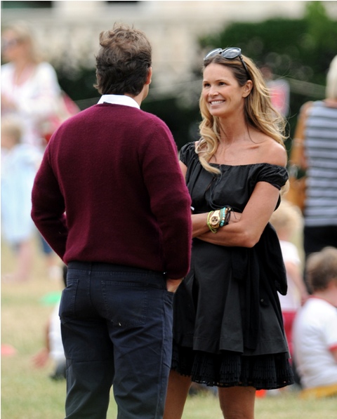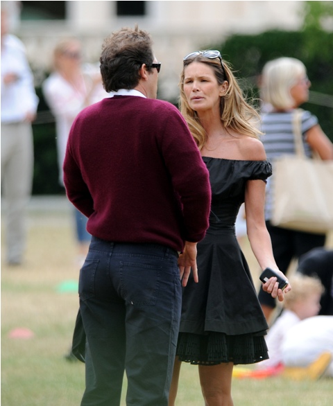 Elle Macpherson had babies with Arpad (Arki) Busson. Then they broke up. A few years later Arki started up with Uma Thurman. They were engaged, called it off, but are still together. Yesterday all 3 were spotted at Hyde Park for the children, civilised and classy and gracious. Oh boo.