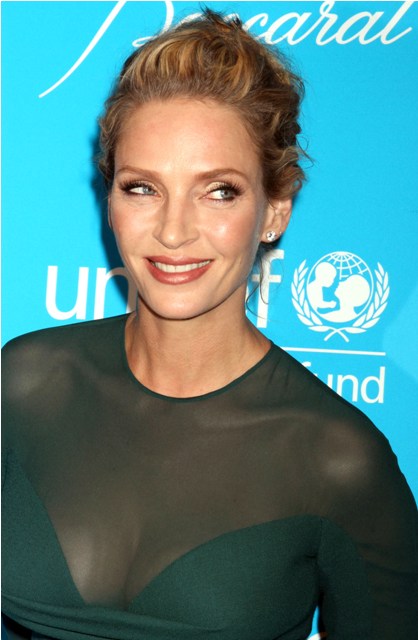 I like the colour of this dress. And the sheer sleeves too. But why am I having a problem with the way Uma Thurman’s breasts are sitting? Is it just me? I feel like they’re pointing in a weird directions.