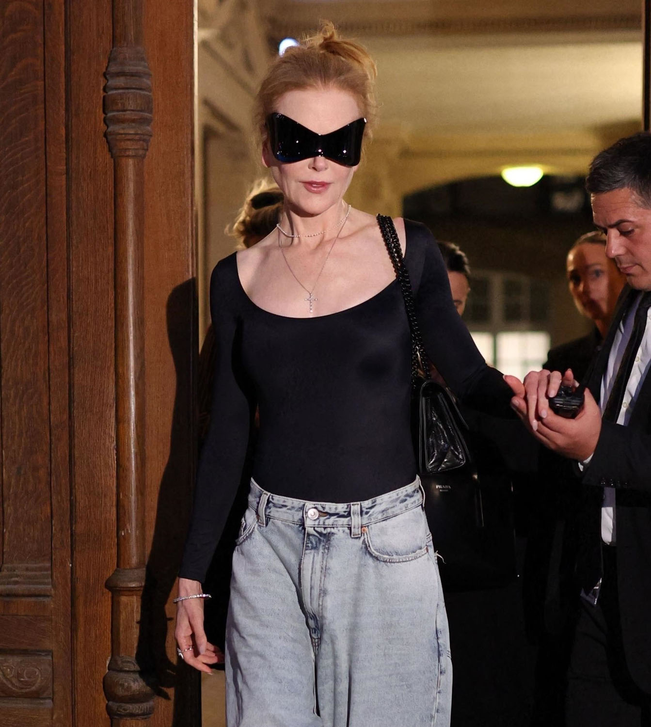 But Nicole Kidman? If there was a Paris haute couture show that Nicole would have been predicted to attend, for me I would have said Armani Privé. Instead she arrived in Paris to serve looks for Demna Gvasalia and Balenciaga, first at a fitting yesterday in high waisted wide leg jeans wearing cat-eye sunglasses and then today, with Keith Urban, not just to see the collection but to model.