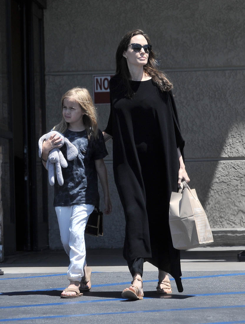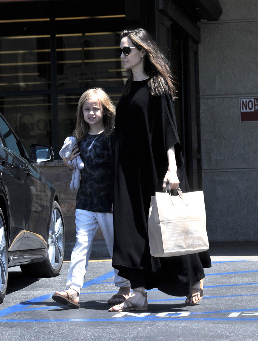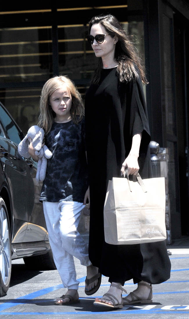 After three months of undermining each other in the media, Brange agreed at the beginning of 2017 to be civil for the sake of their children and to proceed with their divorce privately. We’ve seen Angelina on multiple occasions with the kids (here she is yesterday shopping with Vivienne) but we’ve yet to see Brad step out with them and if you’re Team Pitt, you’re like, yeah, because he doesn’t famewhore them for personal gain and if you’re Team Jolie, you’re like, yeah, that’s probably because Angelina continues to have primary custody and they’re still working through whatever concerns she had about his parenting…which, of course, we got some sense of in that interview he did with GQ when he revealed that he’d quit drinking.