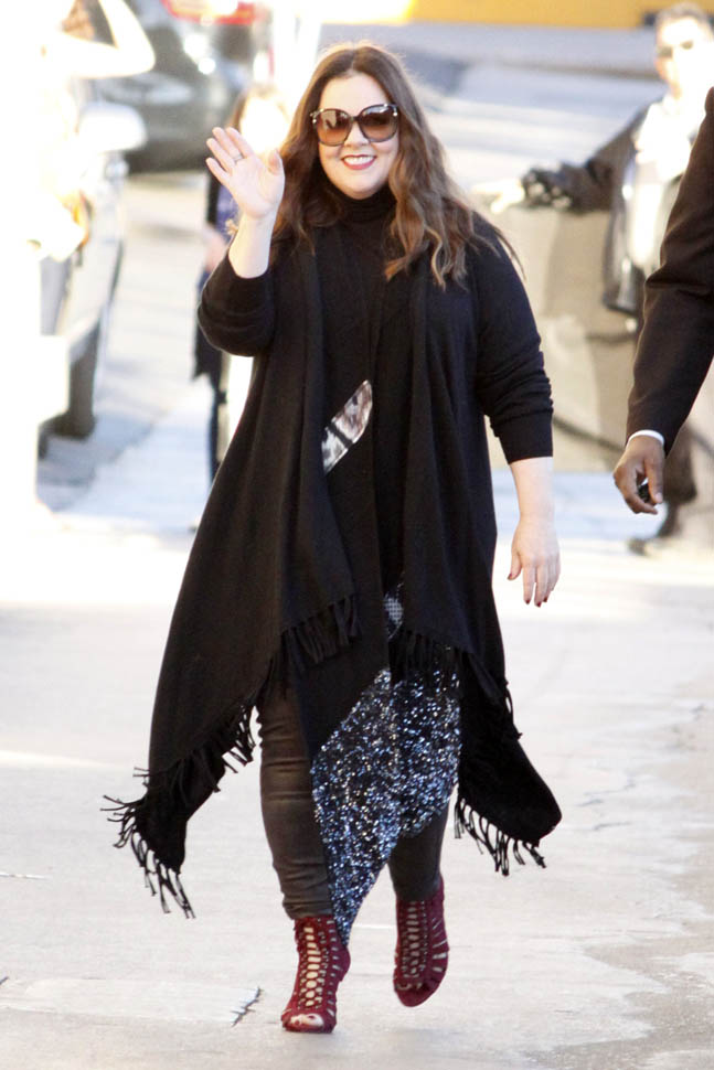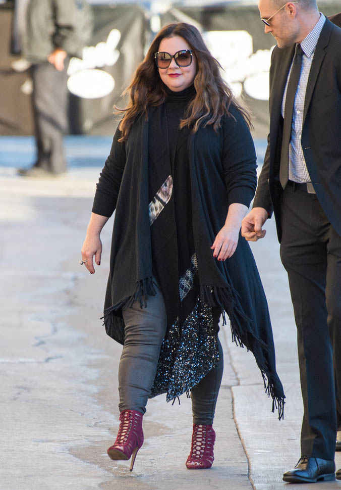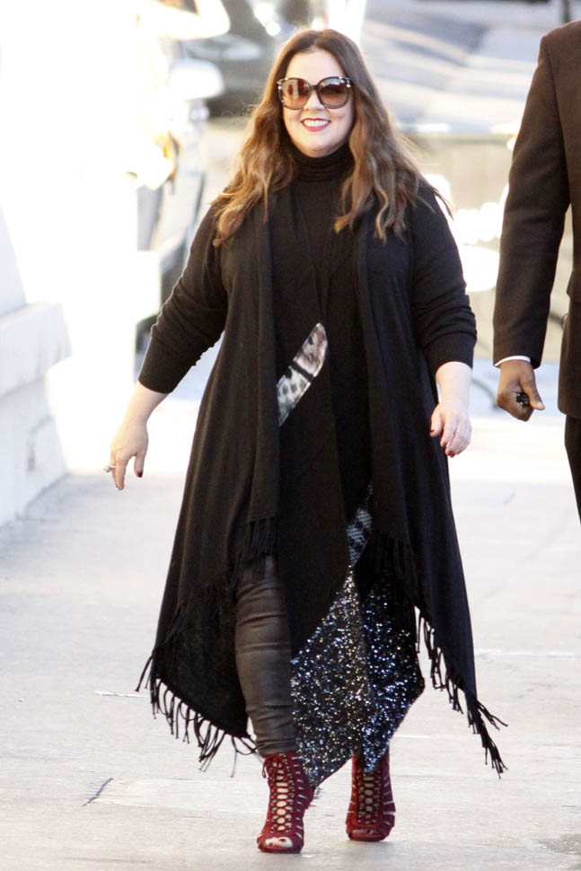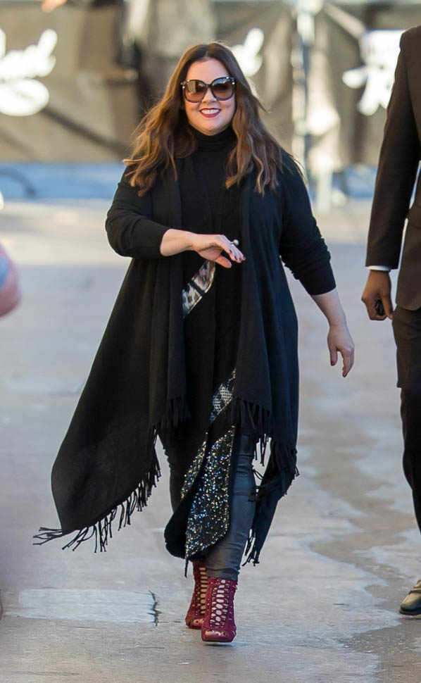 The interest in Melissa’s post-success body (that’s a new one I just came up with) has always been high, simply because so few famous women look like her (as in, a very typical body you see every day in the real world). Magazine headlines want to tell you that Melissa McCarthy has “amazing self-esteem” because the default assumption is that she shouldn’t have any self-esteem. And that’s where the “slim under layers” comes in. It’s like people are amazed she can dress herself, even though she has proven to be very fashion savvy with her clothing line (sizes 4-28). She also went to a prestigious fashion school, FIT. Melissa McCarthy knows more about cuts, and layering, and sizing, and clothing, than most people. I’m looking forward to seeing what she pulls out for The Boss’s press tour. I’m not looking forward to the upcoming barrage of “trim”, “healthy” and “svelte” headlines that are digs disguised as compliments.