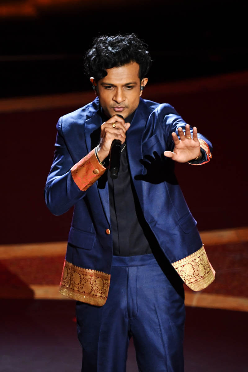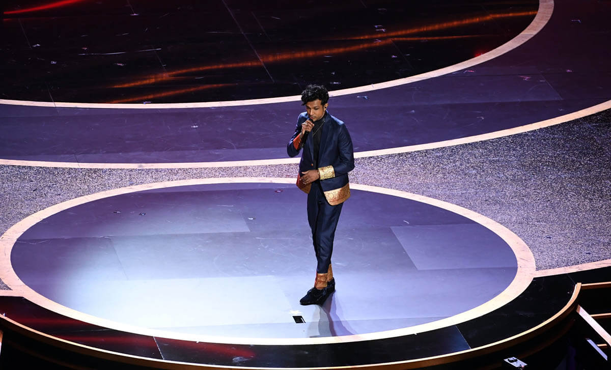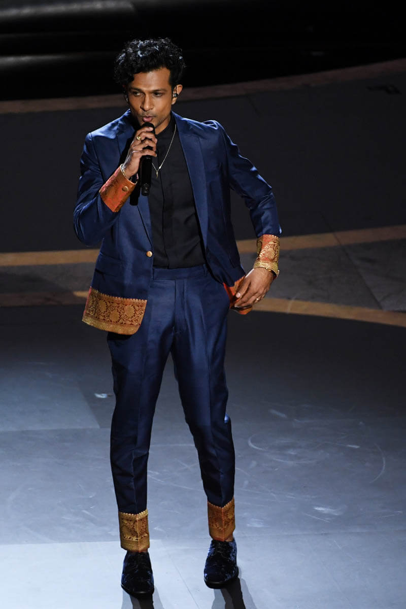 Utkarsh performed a rap recap of the show around its midpoint. Not really a necessary part of the show to begin with. And he’s not all that well known. Which is what he acknowledged off the top of his performance, the point being that the audience should get to know talent like him, because he’s been working, steadily, and is expected to further expand his profile in the next few months, with roles in Mulan and Free Guy. Sort of like, OK Academy, if you’re using me, I’m using you. This was the biggest two minute spotlight of his life, in spite of the fact that he was an early collaborator of Lin-Manuel Miranda while they were workshopping Hamilton.