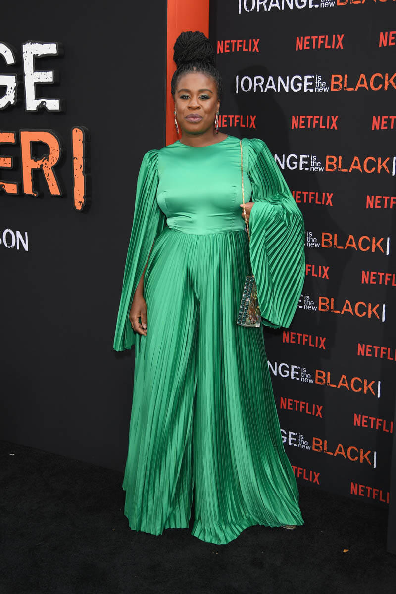 Grateful for Uzo Aduba because up until yesterday, no outfit was all that special to me all week. But here she is coming through last night at the Orange is the New Black premiere. What a great shade of green. And it looks different under different light. Sometimes it’s bright. Sometimes it’s deep and rich, sometimes it’s several shades at the same time.