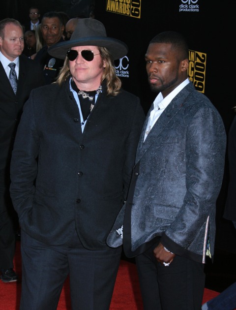 Here’s Val at the American Music Awards last night, no idea why, fronting like it’s 1984 and he’s still Kazansky in uniform. Or on the beach playing volleyball. Like he’s on the highway to the danger zone, Right into the danger zone.