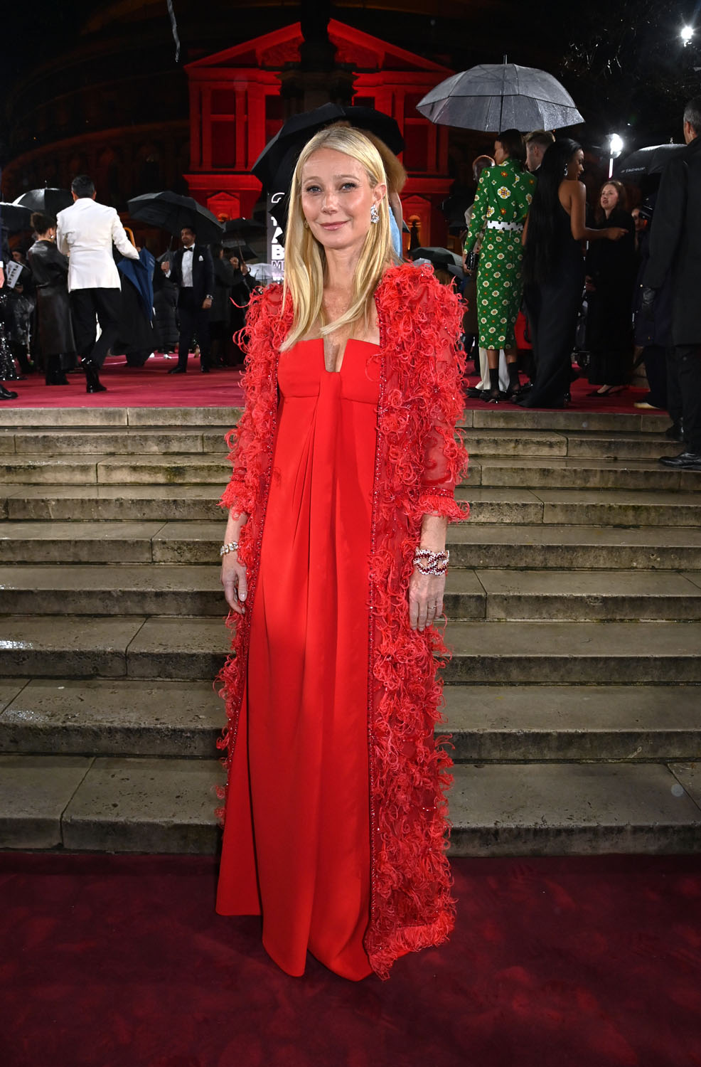 The red dress she’s wearing is from the 1965 haute couture collection, it’s gorgeous on her. But Annie’s the showstopper on this night.