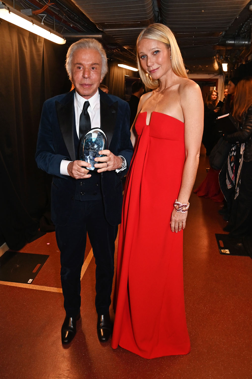 The Fashion Awards took place in London last night with a pretty notable guest list. Among the attendees – two Oscar winners, Gwyneth Paltrow and Anne Hathaway, both of them present for the same reason: to honour Valentino Garavani who won the Outstanding Achievement Award. Mr Valentino is now 91 years old and doesn’t step out in public anymore.