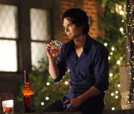 Bar. Stefan stirs wolfbane in Scotch and then, brutally, awesomely, stirs darts in the mixture and throws the darts at Ray. He’s all Mr. Reasonable, which of course, amps up the creepy. Anyway, then someone compelled tells Klaus that Damon was at the farmhouse. Incidentally, my boyfriend just walked into the room, looked at Stefan, and said “Hey, it’s TV Vampire Jacek!” (Lainey: Jacek does NOT look like that TV Vampire!)