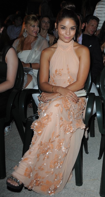 There’s been a lot of beading in Vanessa Hudgens’s wardrobe as she tours parts of Europe to promote The Frozen Ground. I don’t hate any of the looks individually, but lumped all together one after the other, with all those sequins and embellishments, it gets kinda stale, even if the colours are all different.