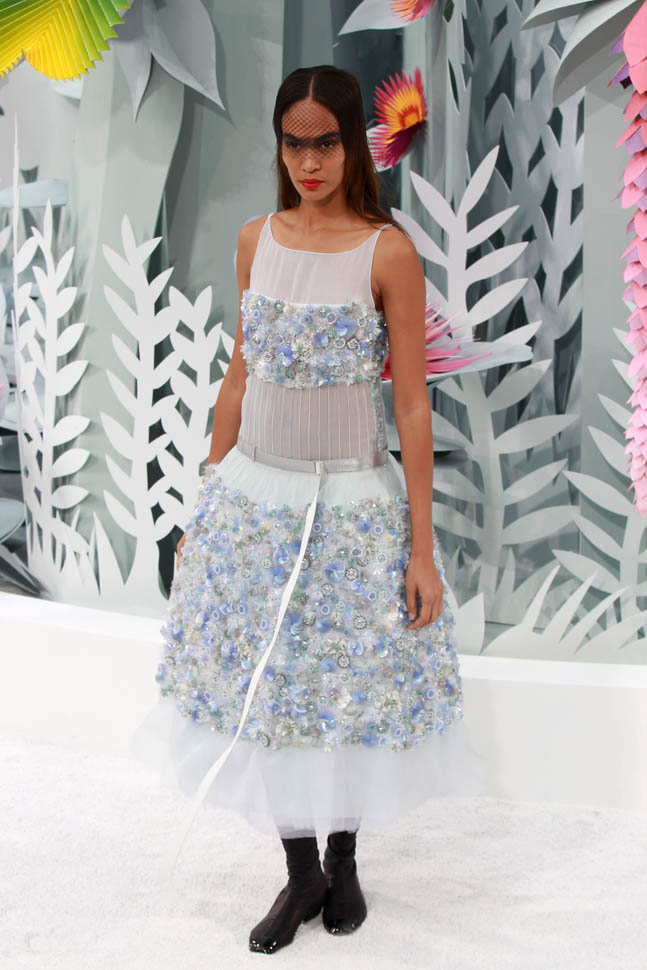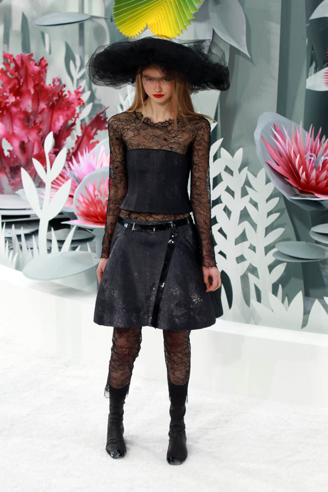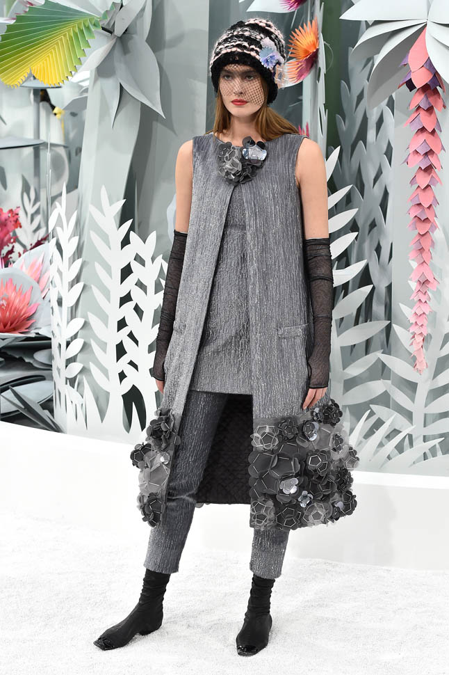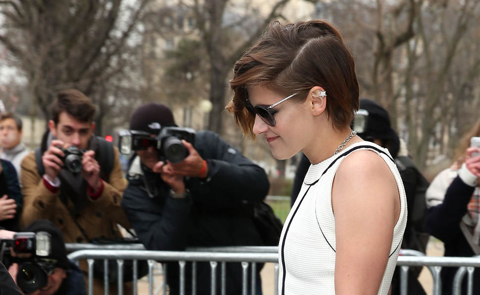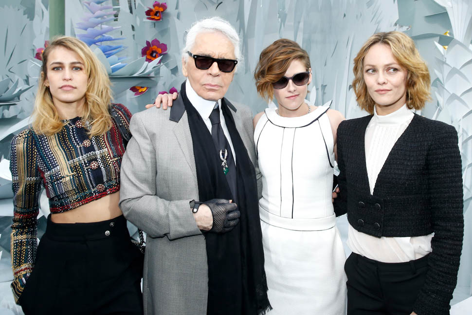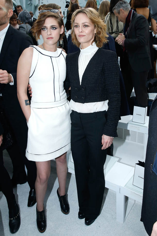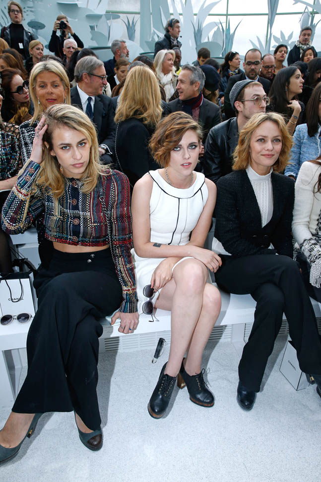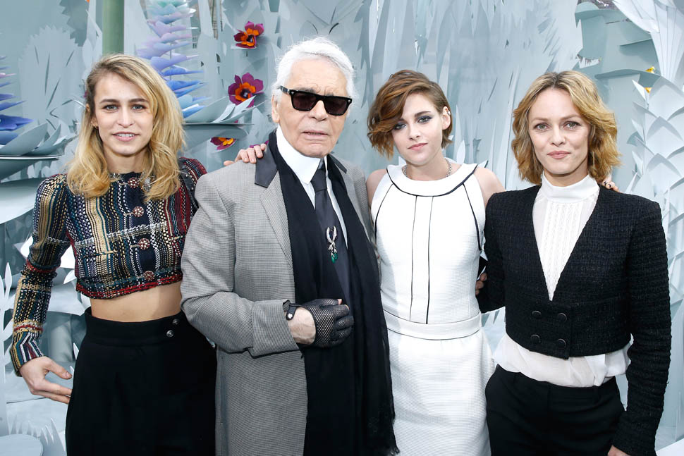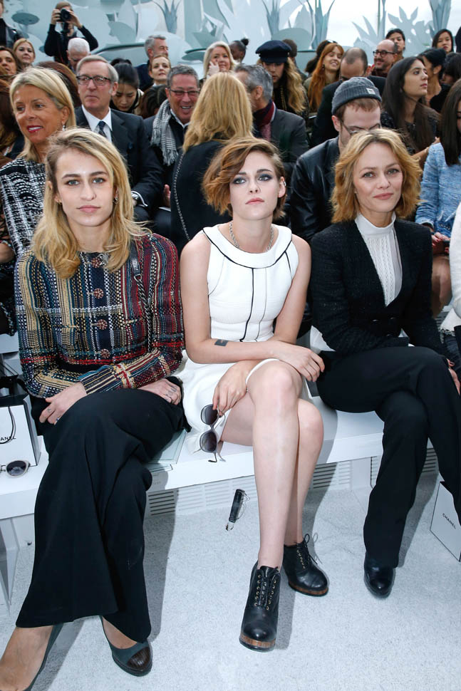 The big show at Paris Fashion Week today was Chanel. Check out Karl with his long-time muse, Vanessa Paradis, and his current muse, Kristen Stewart, following the presentation of the new haute couture collection. The event however was polluted by the presence of a member of the Kanye West’s wife’s family. The mother was there too, ostensibly supporting her daughter on the runway but, basically, promoting herself.