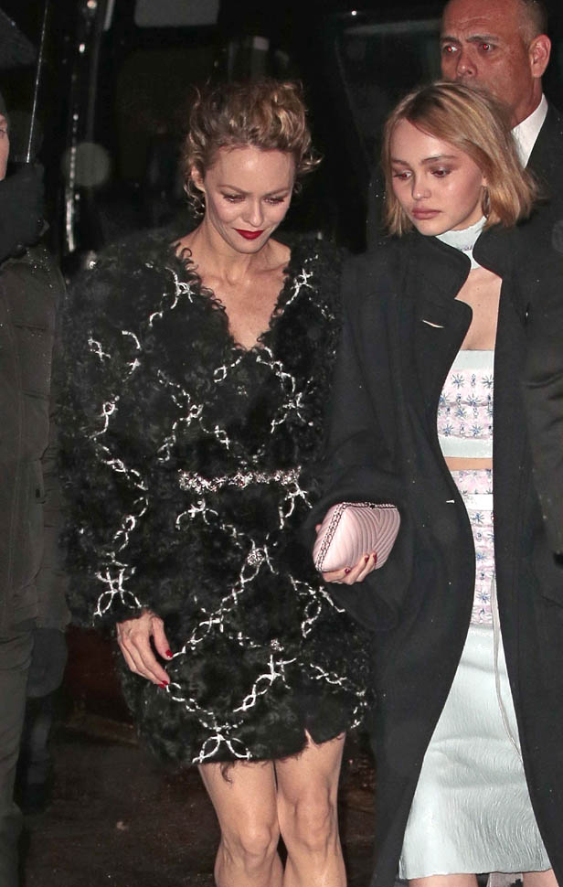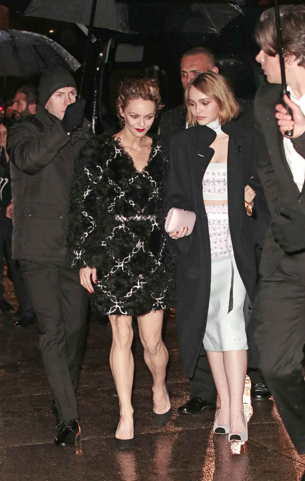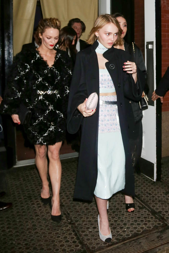 Karl Lagerfeld was in New York last night for the presentation of Chanel’s Paris-Salzburg 2014/15 Metiers d’Art collection. Many of Karl’s favourites attended in support, including a long-standing favourite, Vanessa Paradis. With daughter Lily Rose Depp who turns 16 next month. Both, obviously, wore Chanel. So this is now a family tradition.