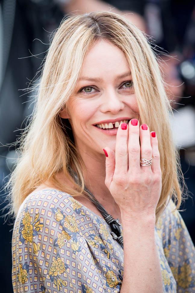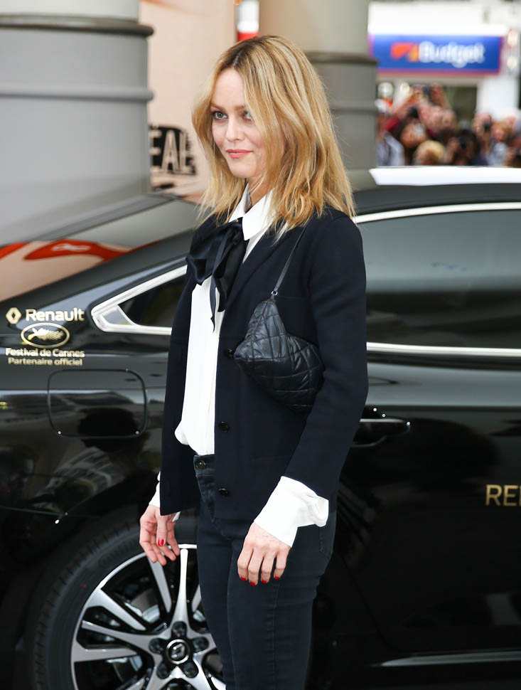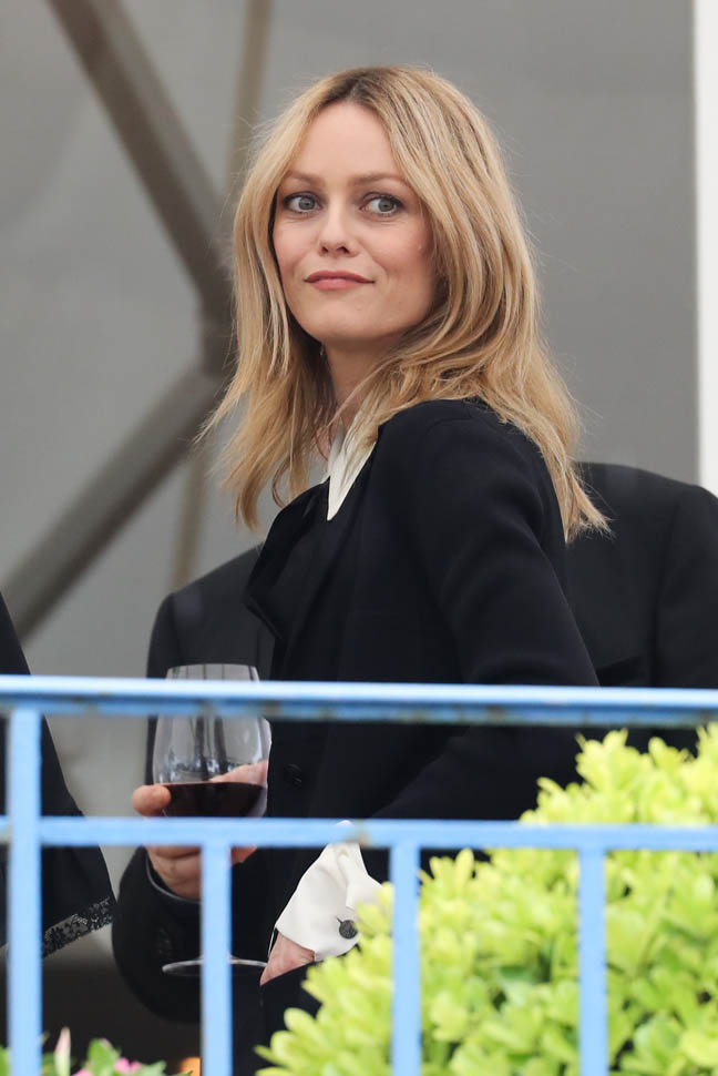 Vanessa Paradis is a member of the jury at Cannes this year. Here she is at a jury dinner last night and at the photo call today. Last night her ex Johnny Depp was in London at the Alice Through The Looking Glass premiere, considerably cleaner than he was at the photo call (click here for a refresher) but still doing a great job reminding her that she should regret nothing.