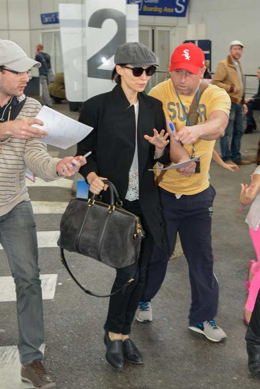 Both arrived in Nice today for the Cannes Film Festival. Vanessa Paradis chose a black hat with a floppy brim. Rooney Mara went with a newsboy and a really great bag.