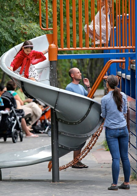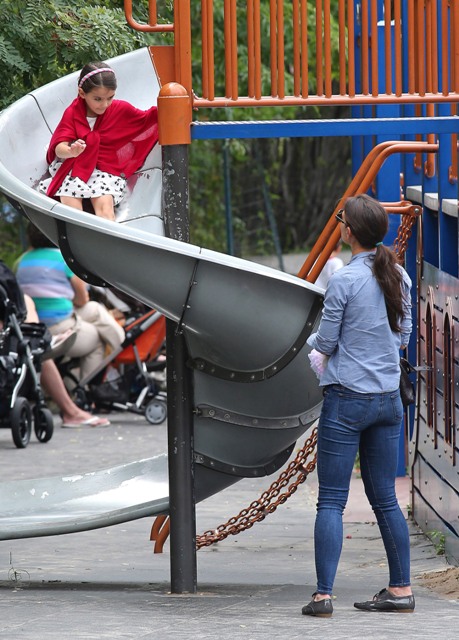 As Katie Holmes, Courage Mother, smiles serenely but not smugly at the playground in New York with Suri less than a week before her first show at New York Fashion Week.