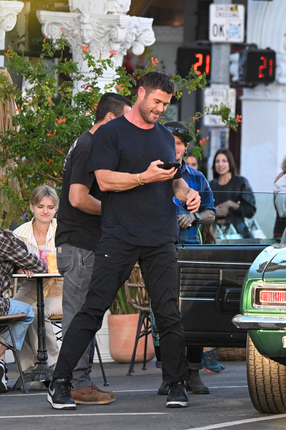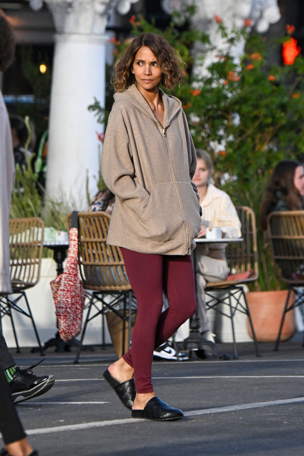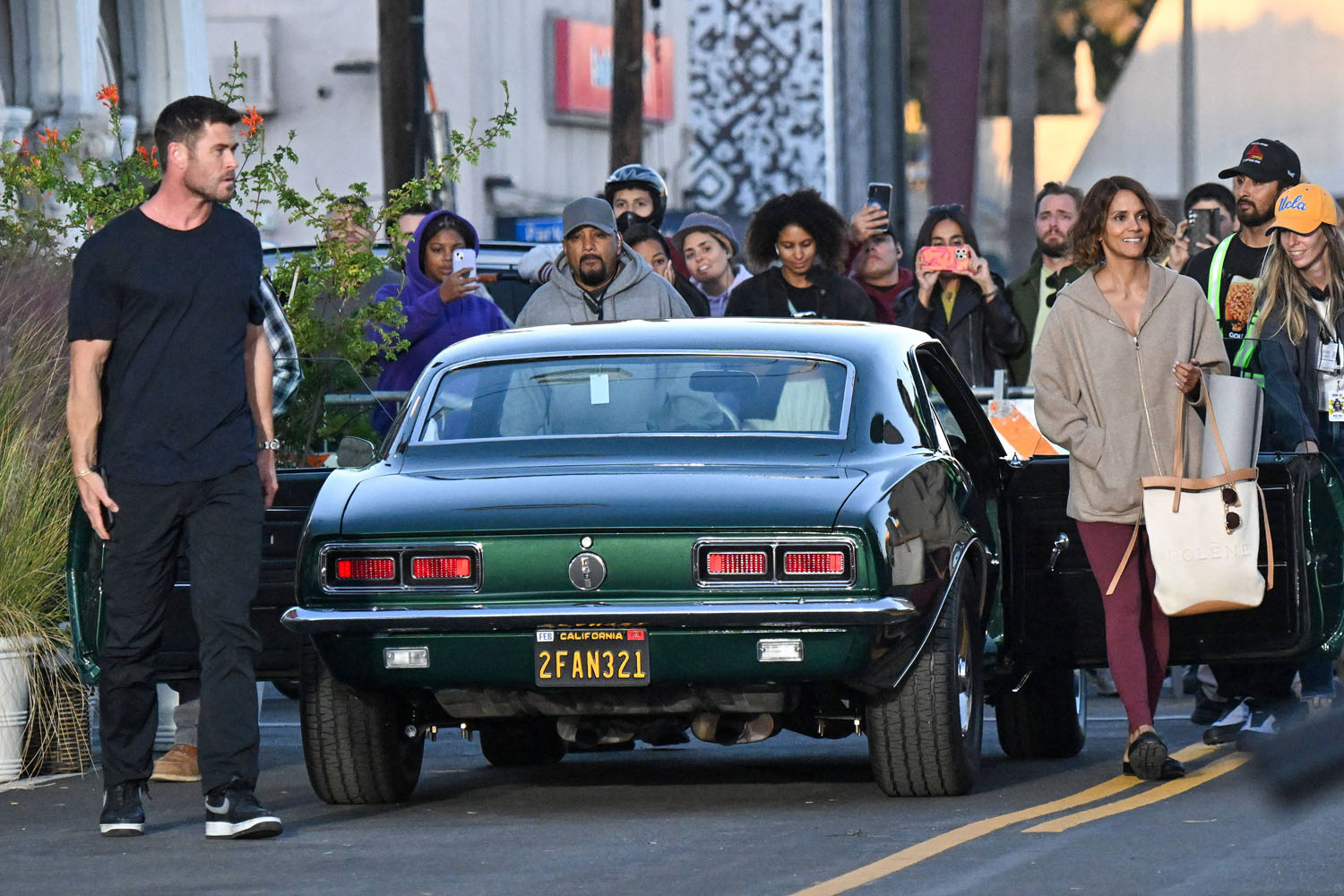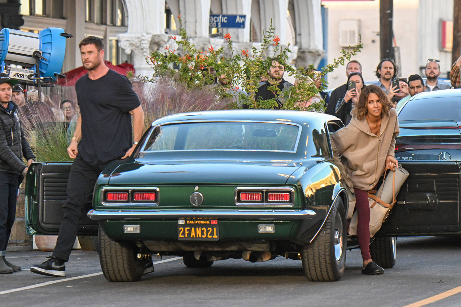 Earlier this week, Halle Berry was seen on set, filming Bart Layton’s new heist thriller, Crime 101. Yesterday, she was back at work but this time with co-star with Chris Hemsworth, the largest man. You know intellectually that Chris Hemsworth is a big dude, but then you see him next to regular people and it’s like yeah, Chris Hemsworth is the largest man.