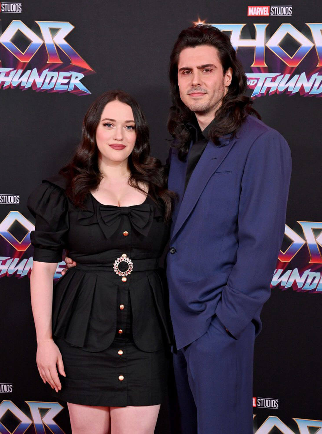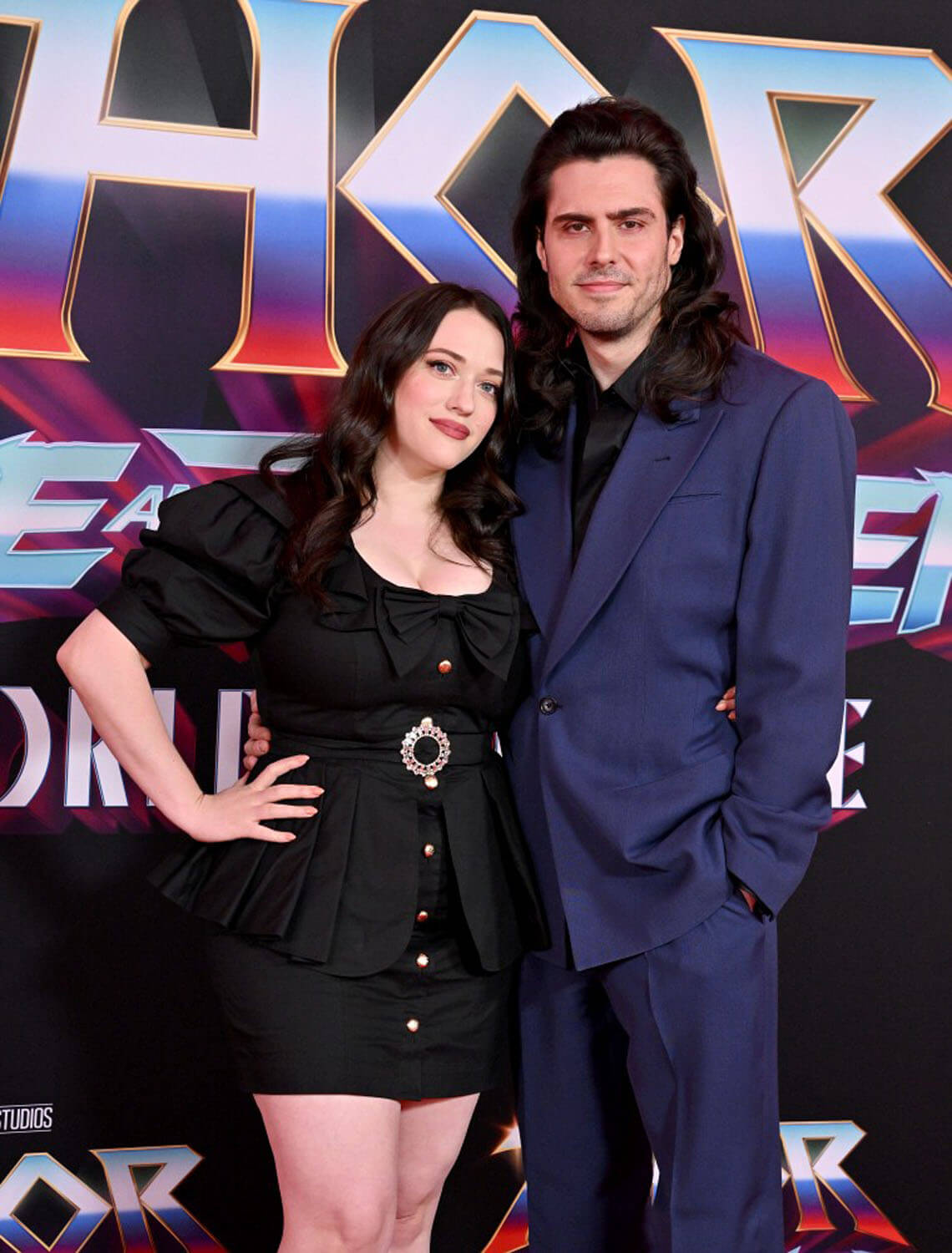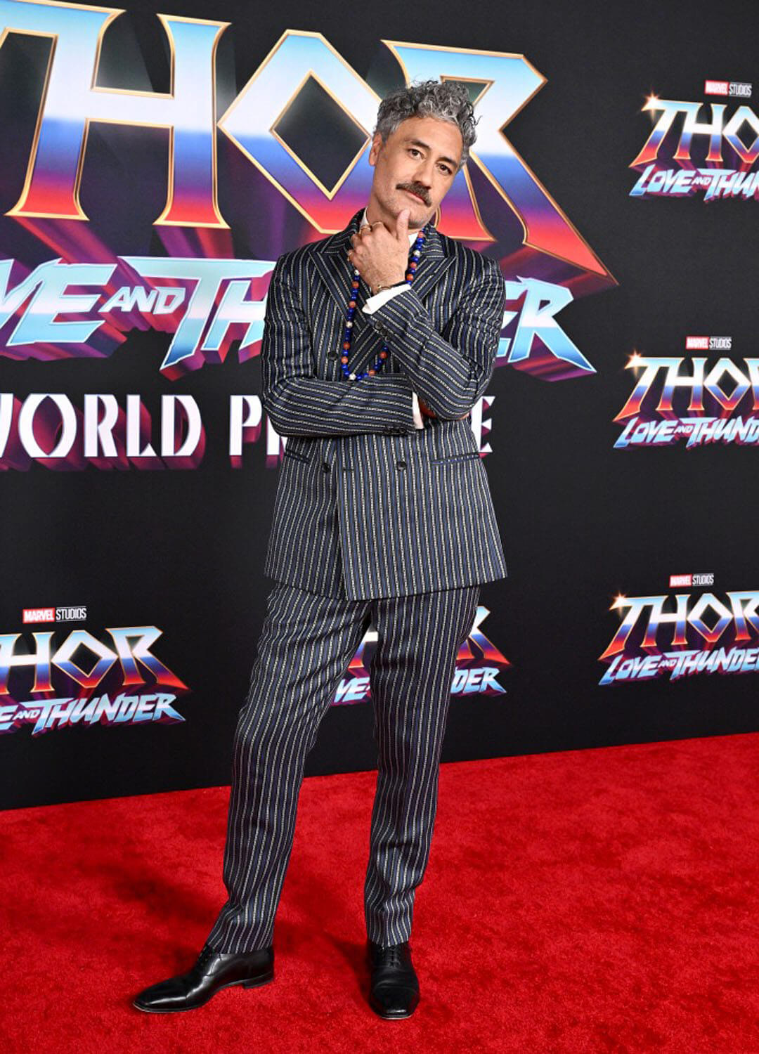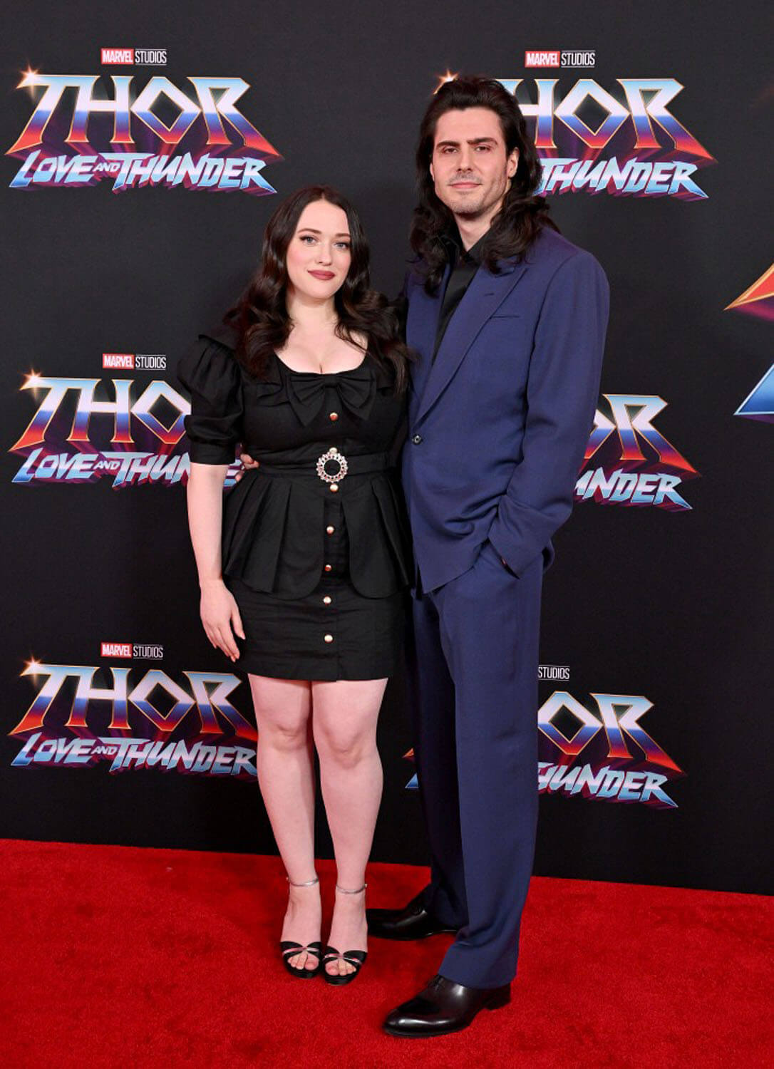 Mission accomplished, Valkyrie can stab me any time. Chris Hemsworth was there, of course, with most of his family in tow (not pictured: Liam), and Worst Chris showed up, too. And Christian Bale finally put in some face time for this film, though I bet not having to do a lot of promotion was part of his deal, as he has been largely absent in the run-up to the press tour. Also, there is Taika Waititi doing a contemporary take on a 1940s gangster suit in pinstripes and mustache. He’s...really committed to that mustache. And! There is Kat Dennings with her fiancée, Andrew W.K., whom I did not recognize with that lustrous blow out. Forget matching outfits, the new red carpet couple trend is matching hairdos. At the very least, we know the next couple weeks will provide plenty of eye candy as the handsomest cast in town trots around the globe for the movie not named Th4r. (Last time I’ll make that joke, I promise.)