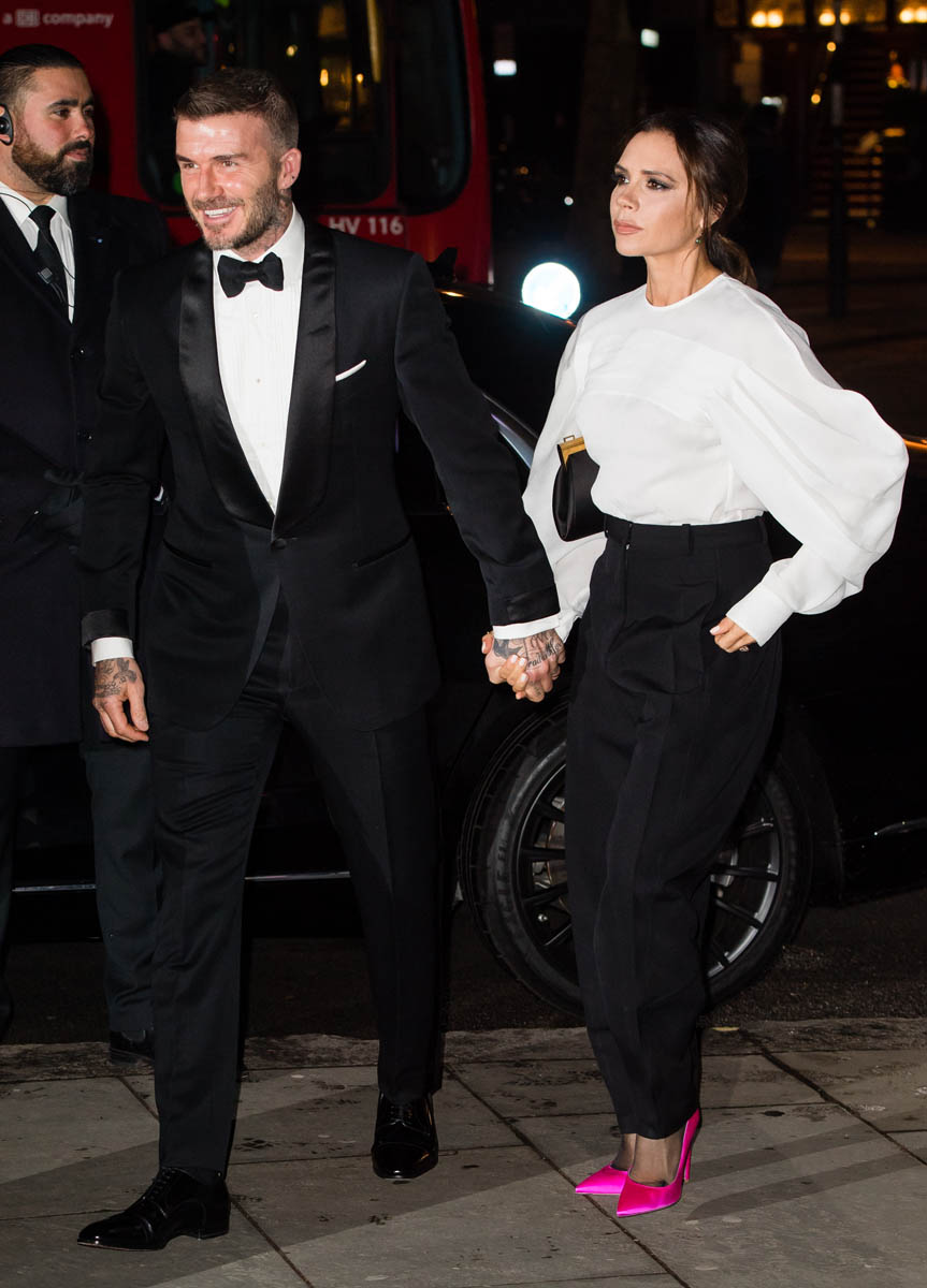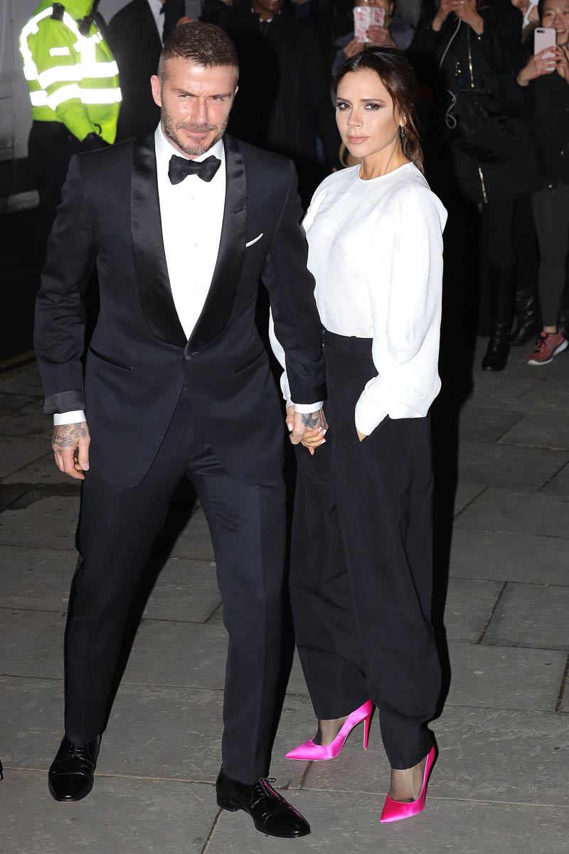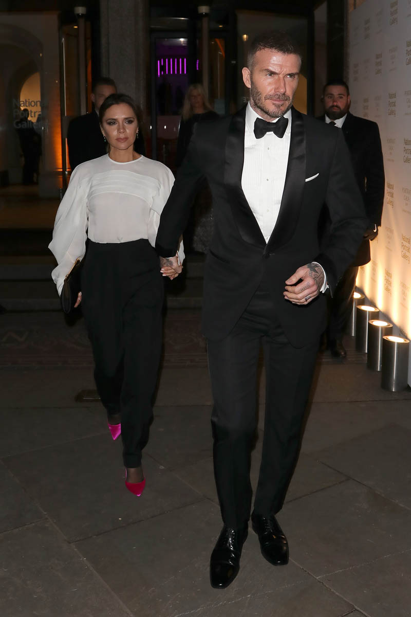 Victoria and David Beckham were at the Portrait Gala last night, seen here leaving hand in hand, reassuring the Beckham worriers out there that all is fine despite yet another rumour about whether or not he’s been faithful. The Beckhams were a heatscore last spring when some story started circulating, within British media, that a divorce announcement was imminent. So many people were convinced, like ready to swear on it, that it was over. It wasn’t over. But there was some crazy speculation about him knocking up a teacher at Harper’s school, or something, which ended up going nowhere and by the end of the summer, the Beckhams had weathered it, giving the British tabloids nowhere to go…until now. A new cycle begins.