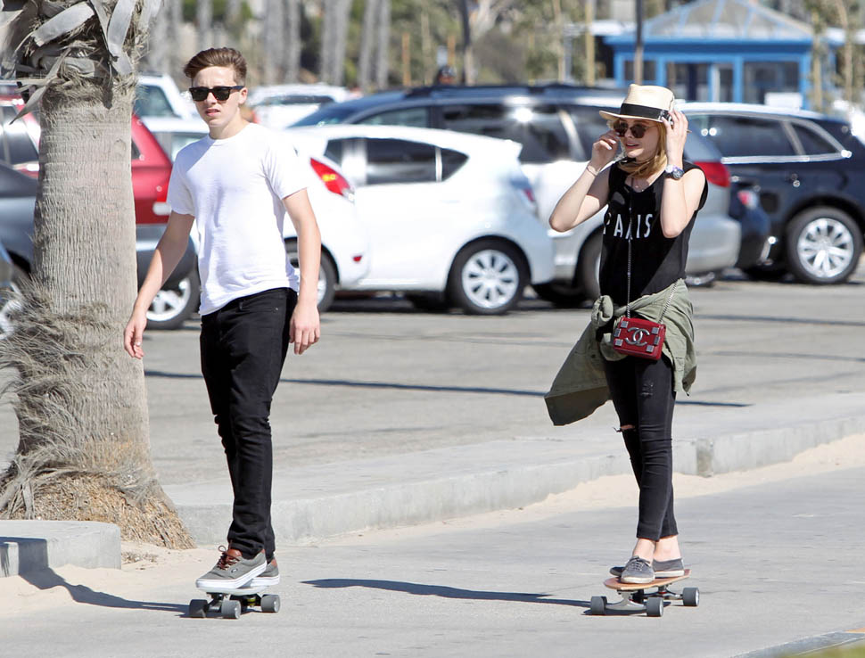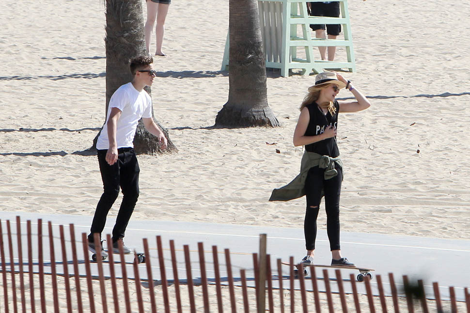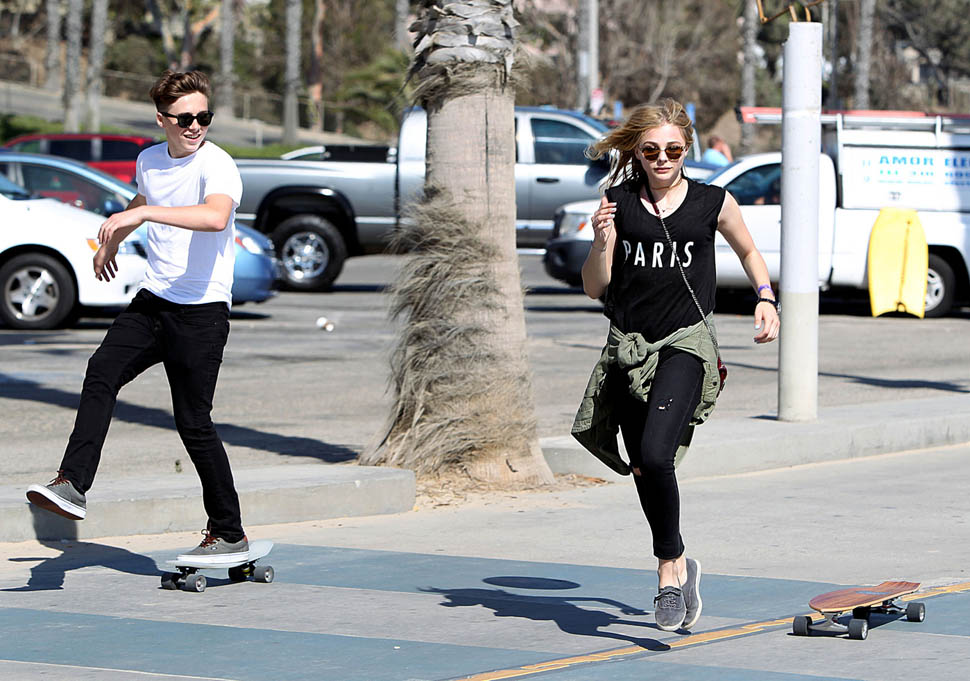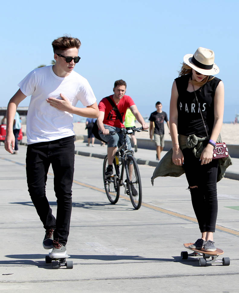 The Beckhams were seen at LAX this weekend heading out of town. All their children were with them including first son, Brooklyn. The day before, Brooklyn, 15, was in Santa Monica. Without his siblings, without his parents. With Chloe Moretz. She’s 17.